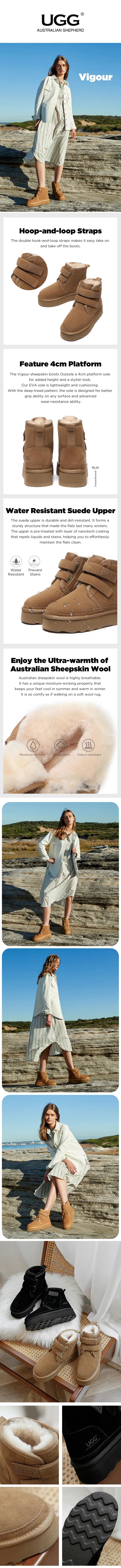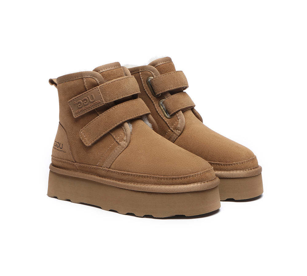 AUSTRALIAN SHEPHERD® UthtGG Boots Women Sheepskin Wool Hook and Loop Platform Vigour