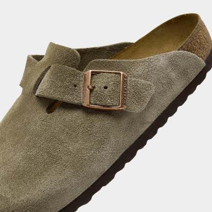 Pamper your feet with the Birkenstock Boston Soft Footbed clog. This versatile slip-on clog features a soft-touch suede upper and iconic natural cork footbed. This is the “soft footbed” version, which gives you an extra layer of indulgent cushioning you’ll love to pair with your coziest streetwear looks.