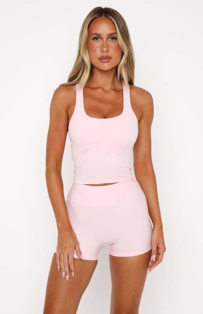 Your next sweat session is calling out for Work It Out Crop Ballet Pink. Features a scoop neckline, thick straps, fitted design, lined, removable padding with inbuilt crop and custom patch detail. Pair with one of the matching Leggings or Shorts in Ballet Pink for a look we love.