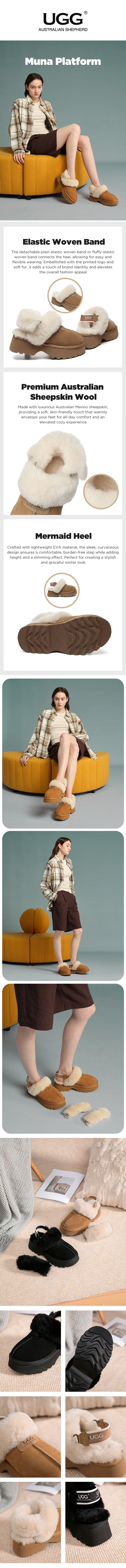 AUSTRALIAN SHEPHERD® 3-Way Style UGG Slippers Women Removable Wool Strap Slingback Chunky Platform Muna #AS2087