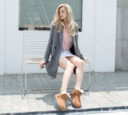 Who says fashion has to hurt? These Australian Shepherd Ladies Mini Button UGG Boots combine on-trend styling with supreme comfort for all-season wear -- indoors and out. A mini wood button with logo stamp compliments exposed fur with traditional double face sheepskin which has a special molecular structure that allows the material to absorb excessive moisture, and always keep your feet warm and dry. The boots can be paired with jeans and a jacket or with a sundress during summer.