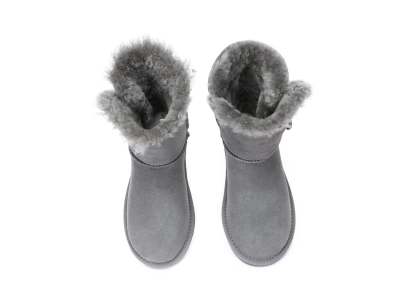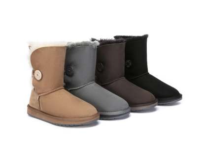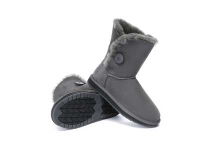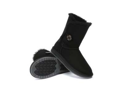 All-season comfort meets fashionable styling in these cute-as-a-button Australian Shepherd Ladies Short Button UGG Boots. They are suitable for indoor and outdoor wear, and the breathable twin-face sheepskin and suede construction will keep you cosy in winter and cool in summer. The logo-stamped wood button with loop fastener joins the exposed fur design for a stylish look, and the versatile design means the boots can be worn up with jeans or opened and cuffed to pair with your favorite sundress.