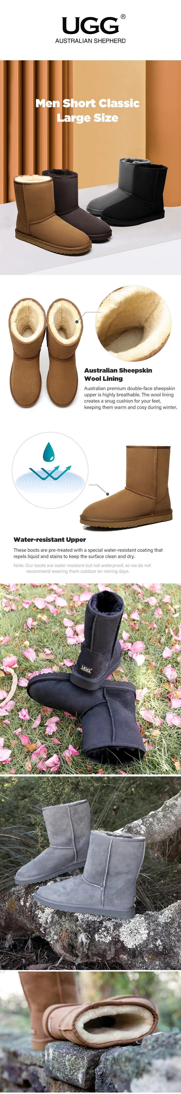 AUSTRALIAN SHEPHERD® UGG Boots Men Double Faced Sheepskin Wool Large Size Short Classic #15820