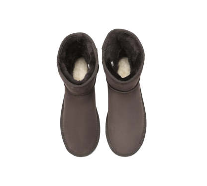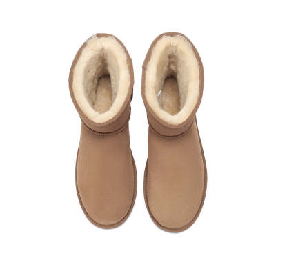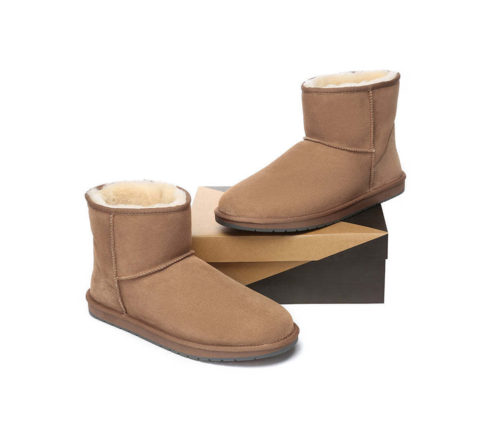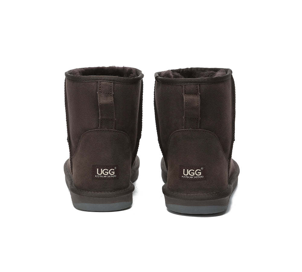 Our Mini Classic Ugg Boots in Australian Sheepskin are a must in the winter wardrobe! This style has been made in a larger size to ensure there is a pair for every person. With Genuine Double Face sheepskin, water-resistant features, and a non-slip EVA sole, these boots will keep your feet warm throughout the colder months.