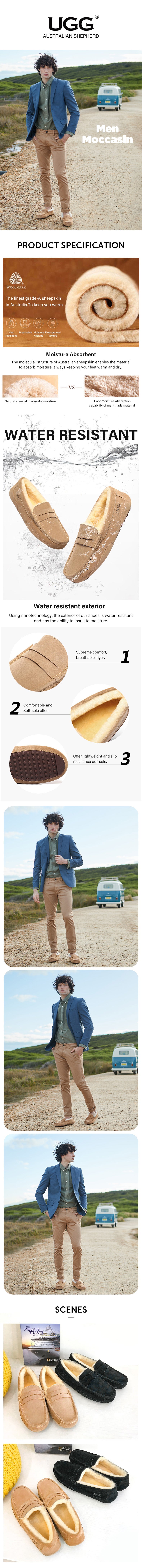 AUSTRALIAN SHEPHERD® UGG Slippers Men Sheepskin Wool Ankle Casual Moccasins #512015