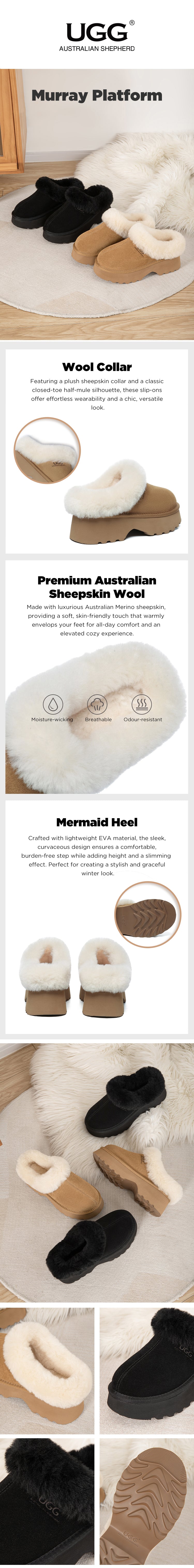 AUSTRALIAN SHEPHERD® UGG Slippers Sheepskin Wool Ankle Chunky Platform Murray #AS2088