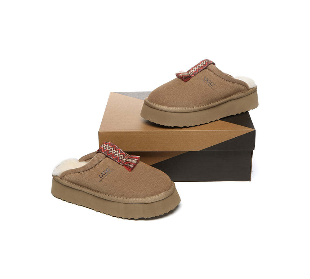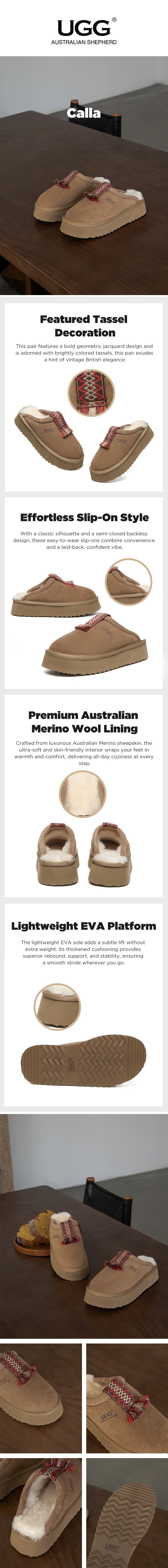 AUSTRALIAN SHEPHERD® UGG Slippers Sheepskin Wool Platform Tazzy Calla #AS2084