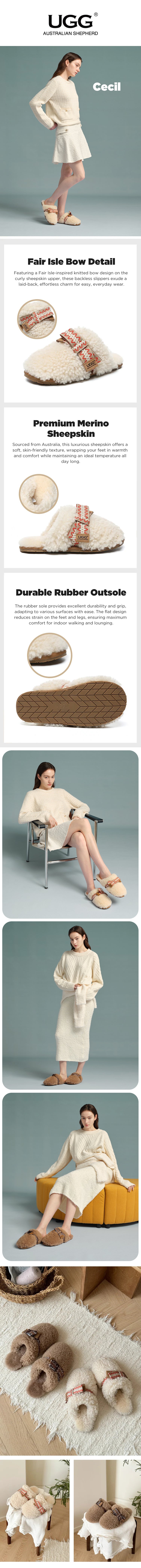 AUSTRALIAN SHEPHERD® UthtGG Slippers Women Sheepskin Wool Bow Cecil