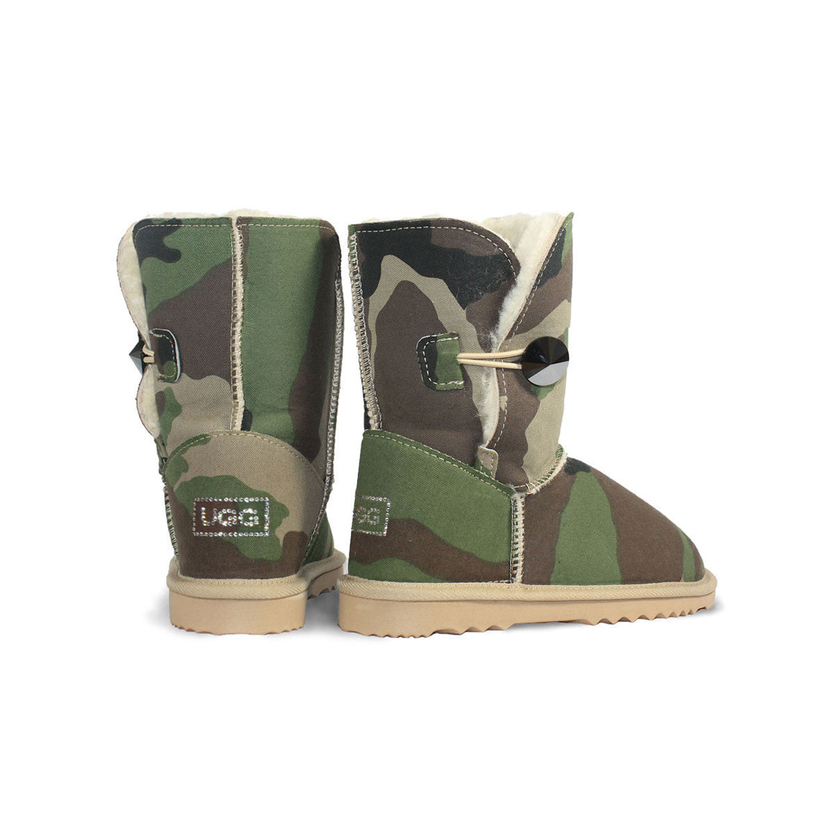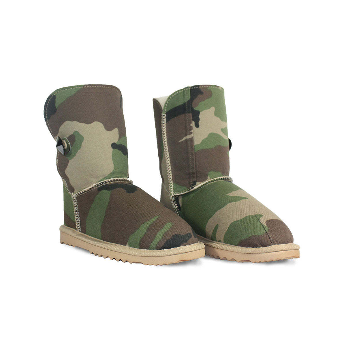 - Genuine military camouflage material bonded to sheepskin, colour and pattern may vary