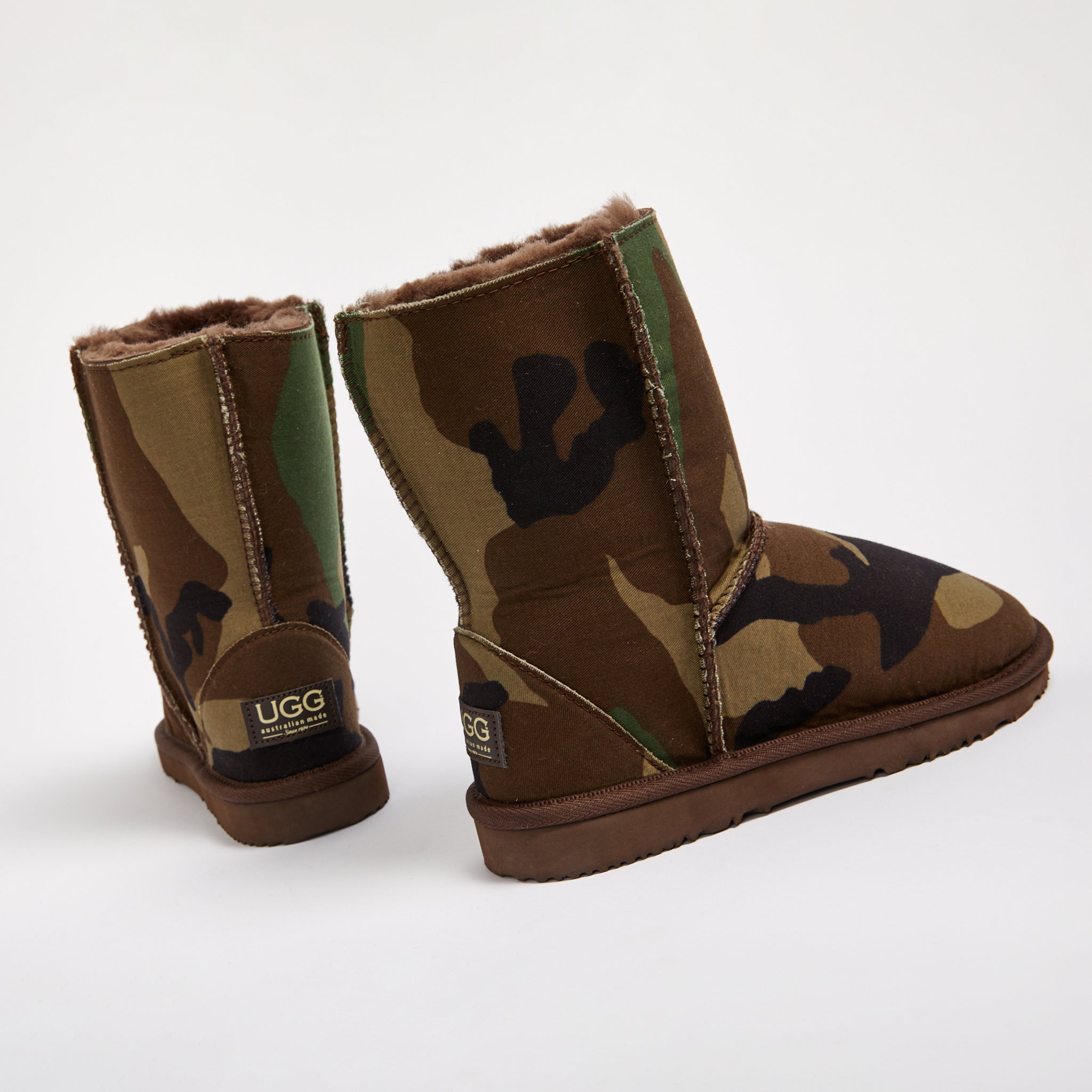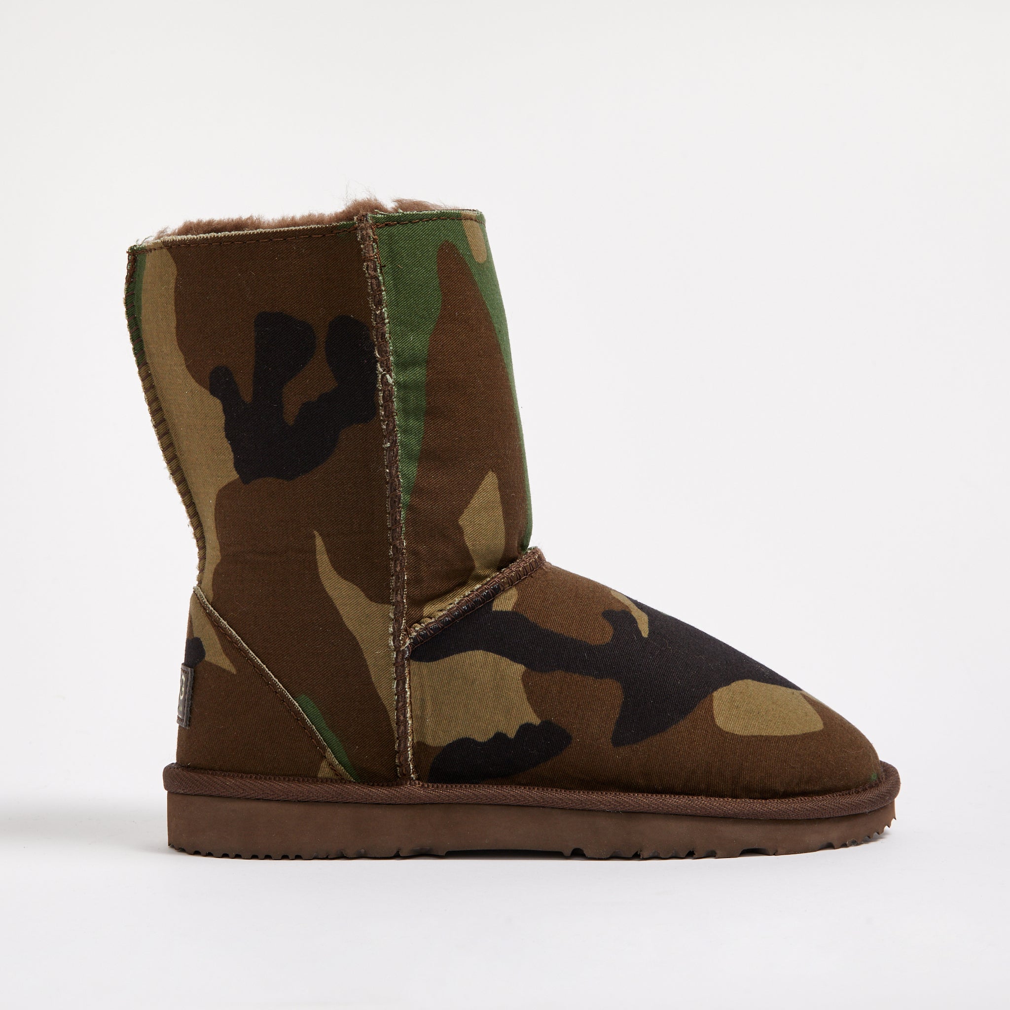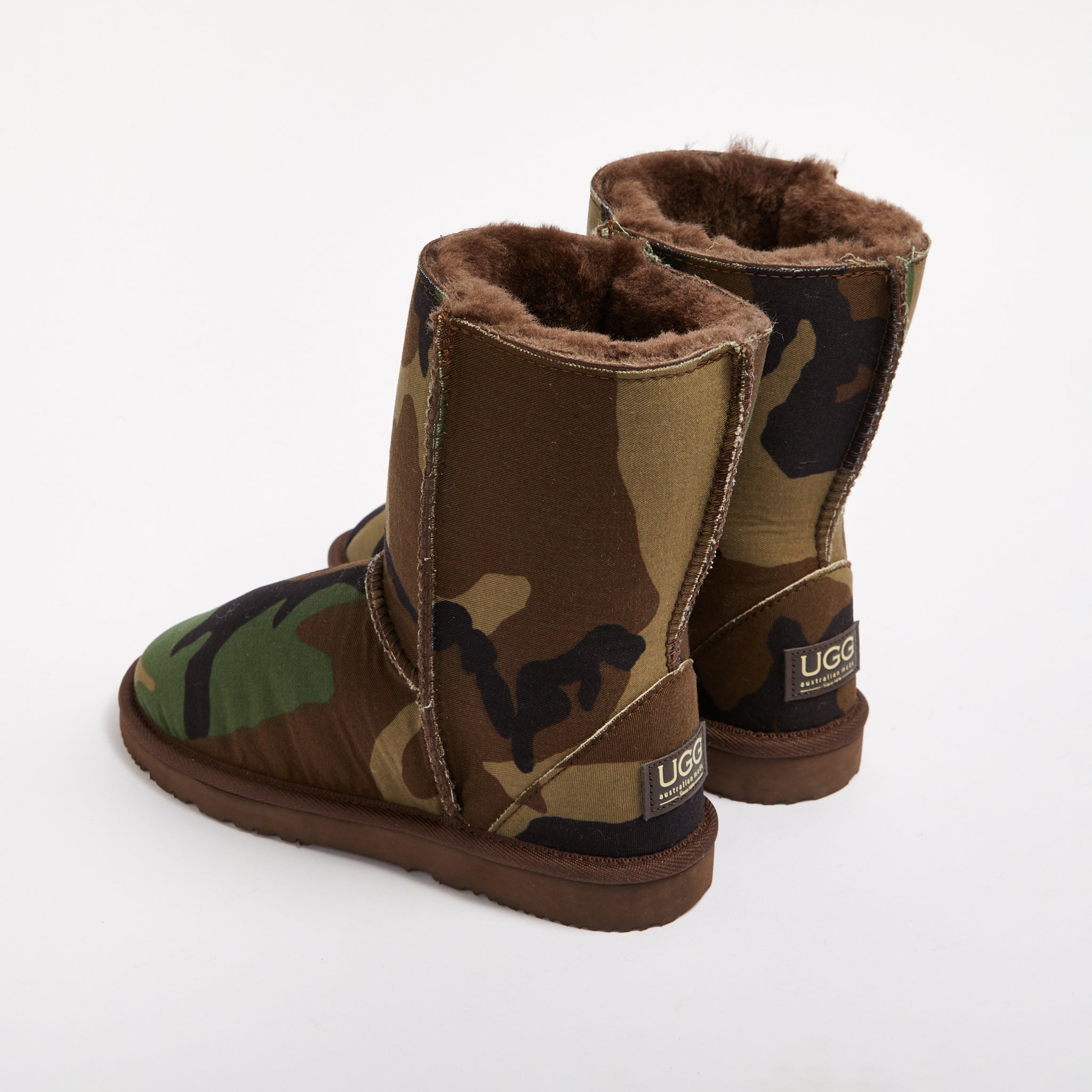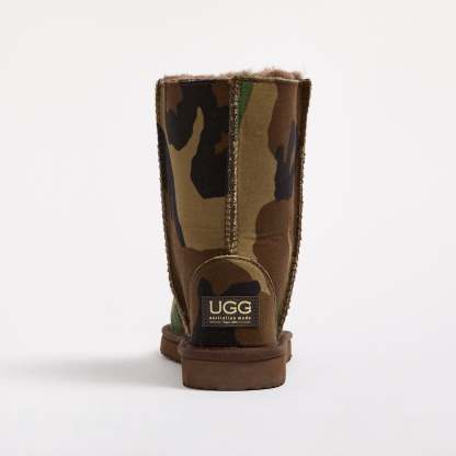 - Genuine military camouflage material bonded to sheepskin, colour and pattern may vary
