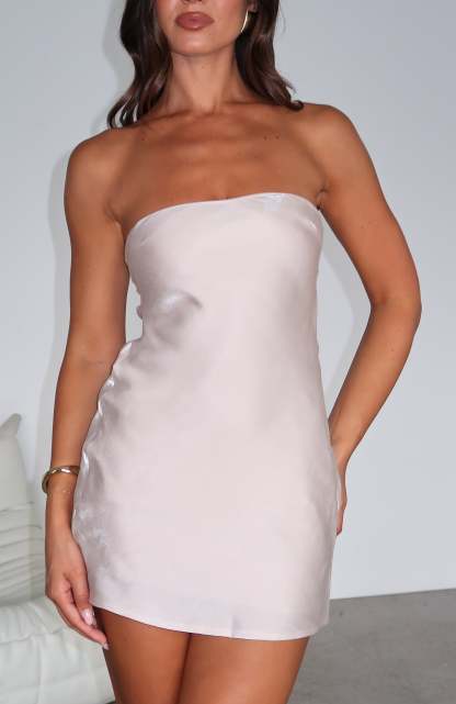 You’ll always be having a good time in the Crazy For You Mini Dress in Pearl. This strapless mini dress features invisible side zipper, backless design and lined, shimmer fabric. Complete the look with perspex heels and simple accessories and let the dress do all the talking!