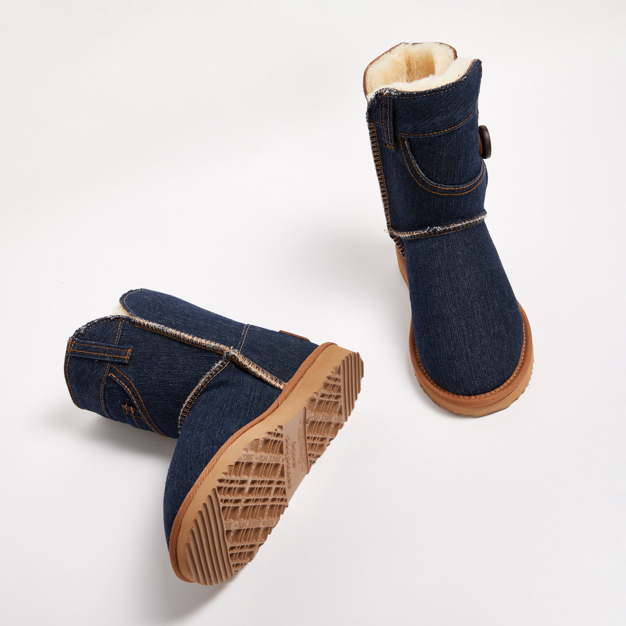 - Each pair of boots are made from a single pair of vintage denim jeans. Colour and pattern will vary as every pair is unique. Contact us for custom options or leave instructions at checkout