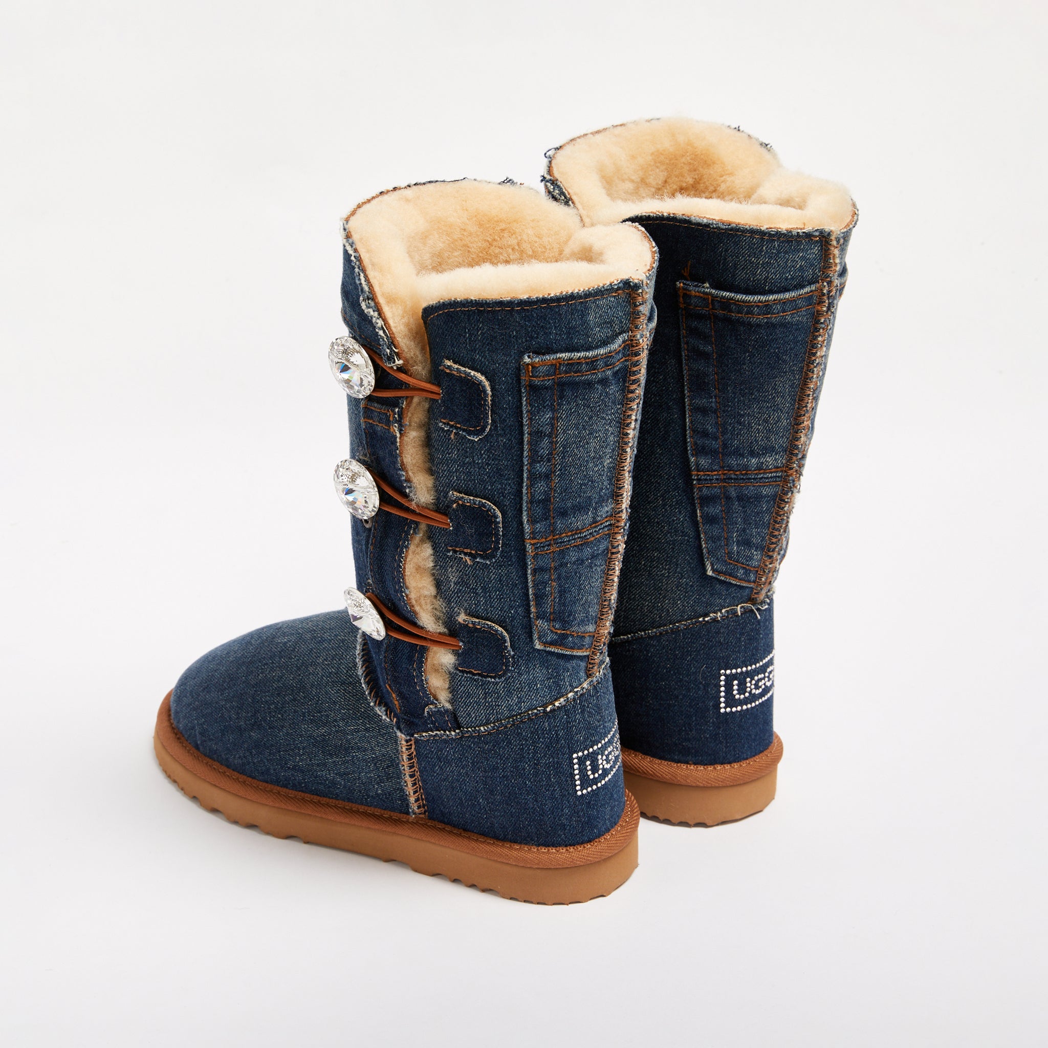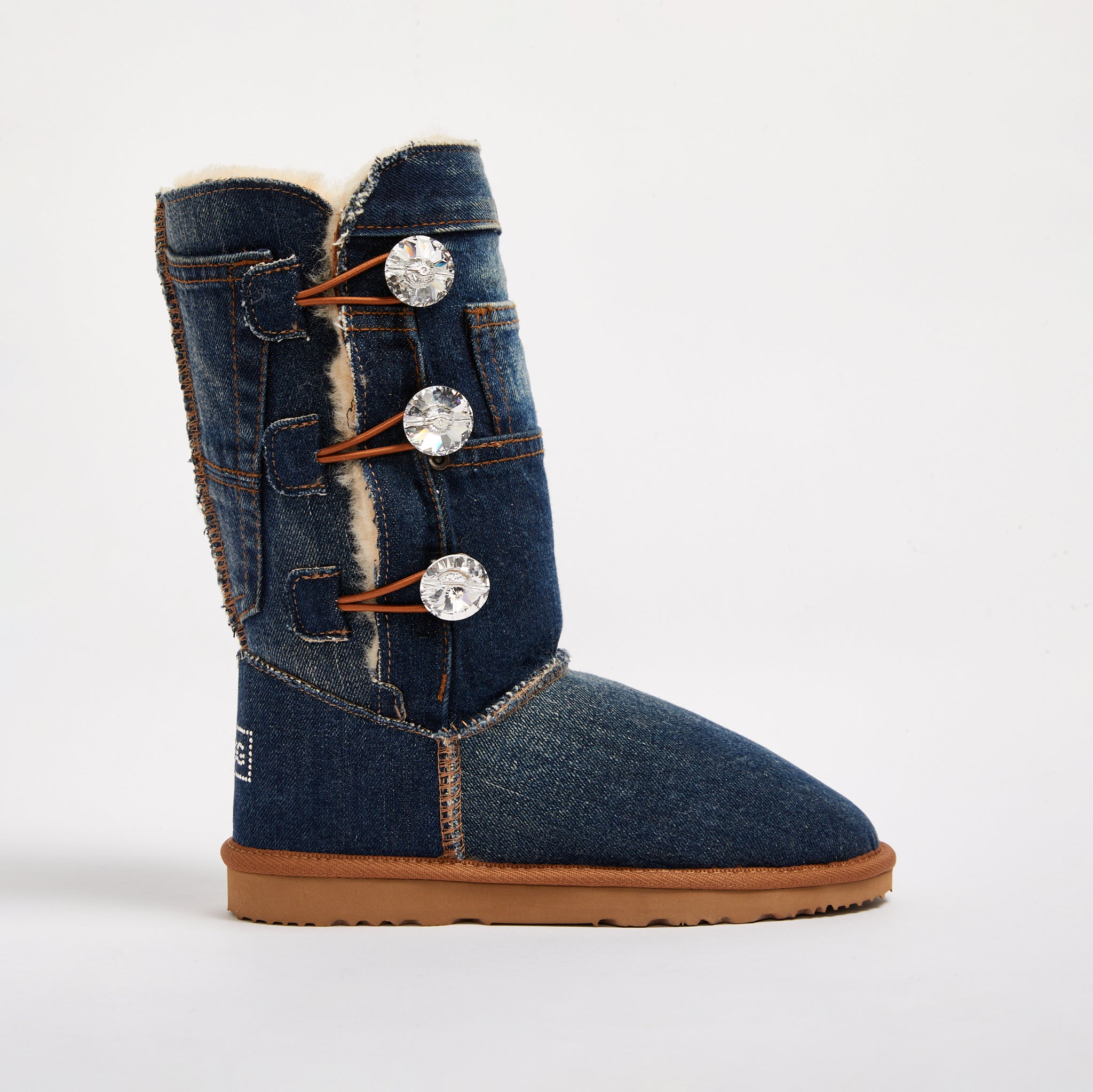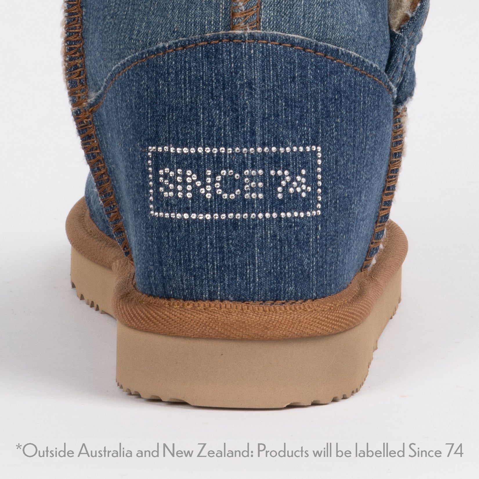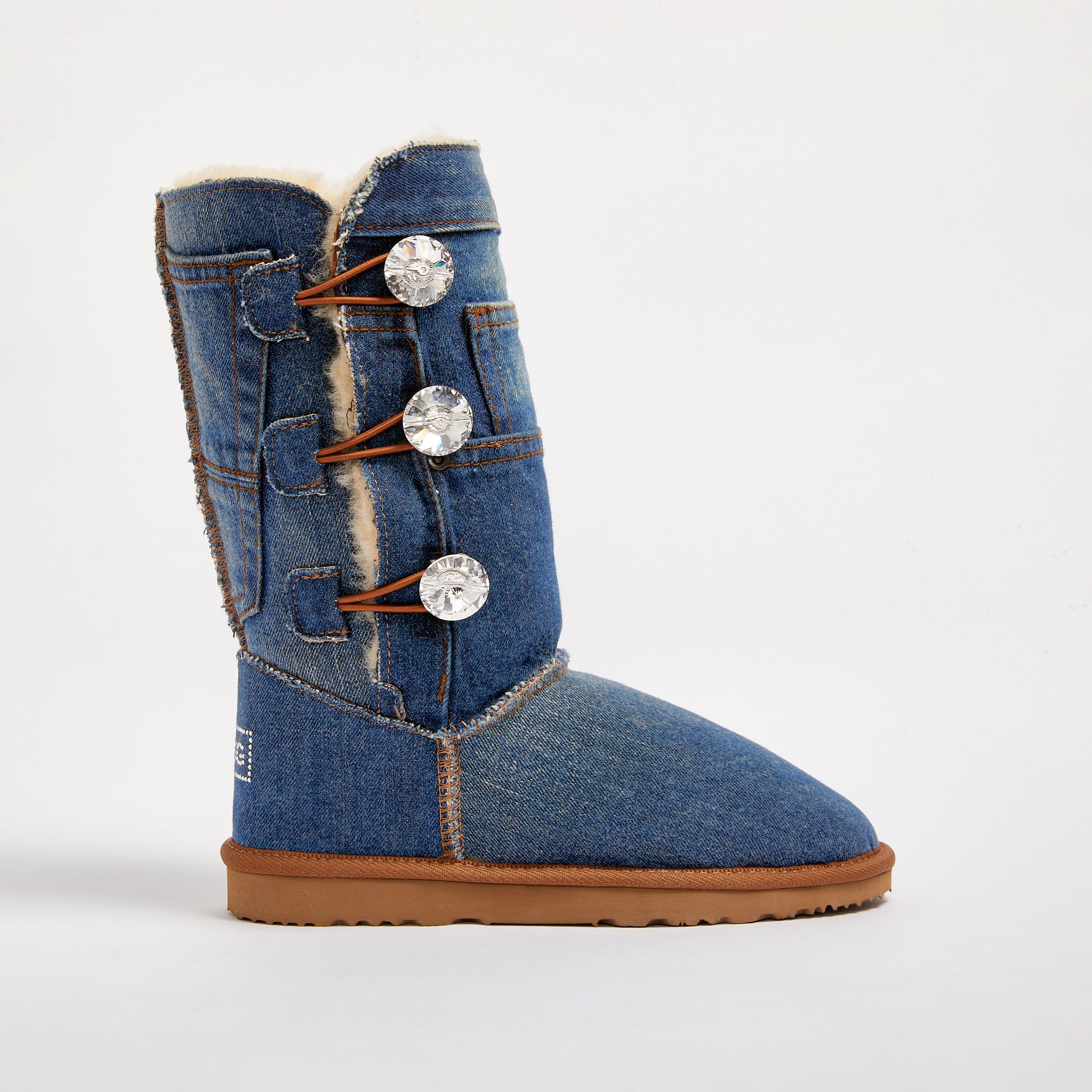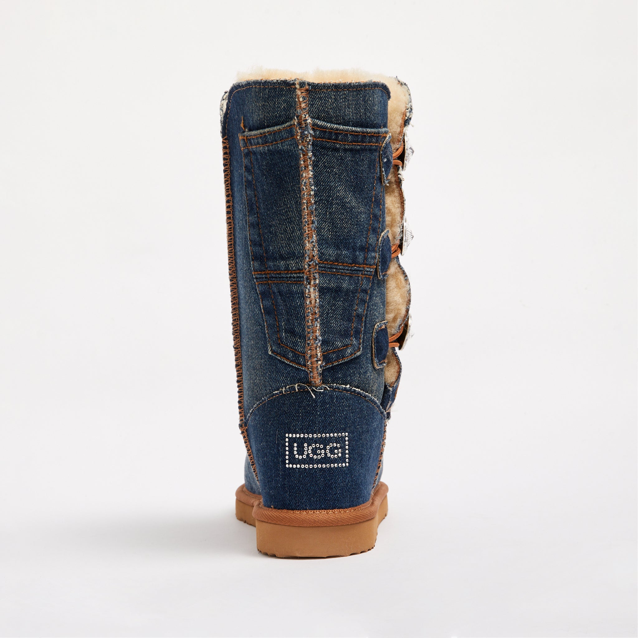 - Each pair of boots are made from a single pair of vintage denim jeans. Colour and pattern will vary as every pair is unique. Contact us for custom options or leave instructions at checkout