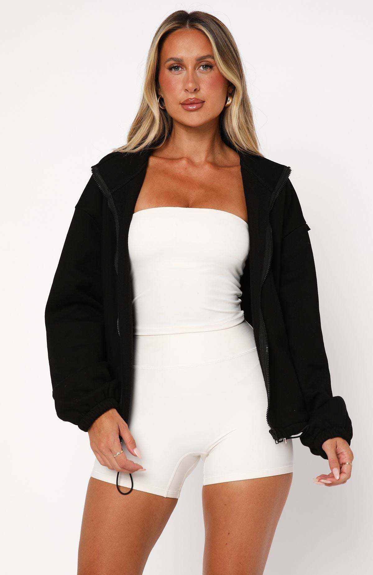 Feel confident and crush your goals with the Don't Look Now Zip Front Sweater Black. Features a collared neckline, front zipper closure, drawstring hem for a desired fit and soft, fuzzy material. Pair over any of your favourite WFA outfits!