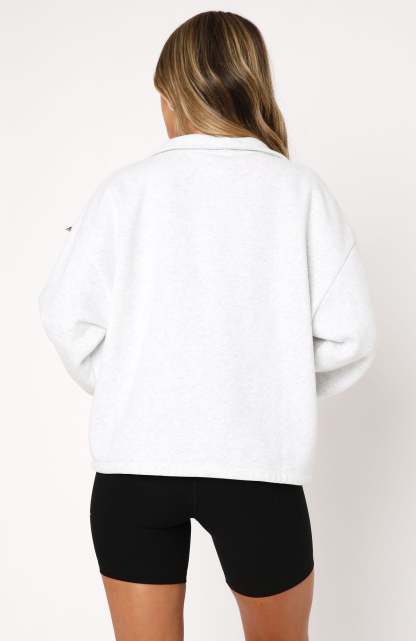 Feel confident and crush your goals with the Don't Look Now Zip Front Sweater Grey Marle. Features a collared neckline, front zipper closure, drawstring hem for a desired fit and soft, fuzzy material. Pair over any of your favourite WFA outfits!