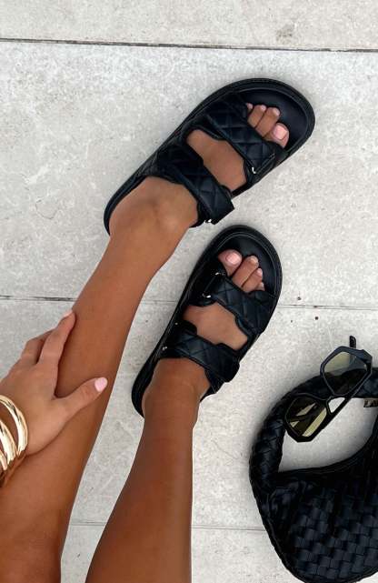 Step into summer in the Feeling Lucky Slides Black! Features an easy slip on design, open rounded toe, double strap design with velcro detail and open back. Pair with denim shorts and a crop top for your next island adventure!