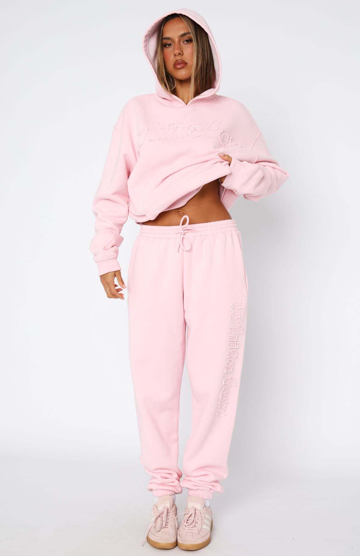 Cosy season is here! The From The Archives Lexi Sweatpants in Pink features a thick elasticated waistband with external drawstring ties, frayed fabrication White Fox text side front and elasticated cuff on bottom leg. Complete the look with the matching From The Archives Lexi Oversized Hoodie Pink for a look we love!