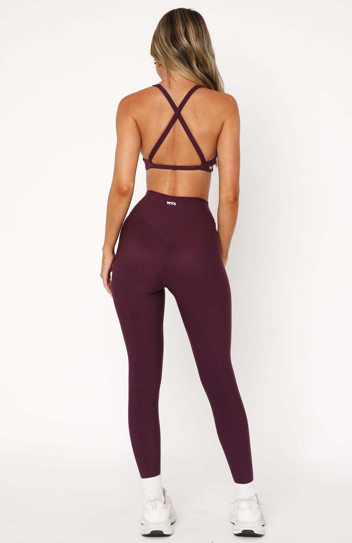 Elevate your gym-drobe with the Go Getter High Waisted Leggings in Plum. These training tights are high waisted with a supportive wide waistband, flattering curve defining ‘V’ shape booty seam and anti-chafing gusset seam for added confidence, ankle grazer length with logo centre back of waistband. Pair with one of our matching sports crops or bras in Plum for a look we are loving!