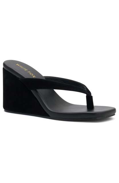 Let the Grace Wedge Black Faux Suede take you from brunch to bar! Features a cushioned footbed for all-day comfort, round open toe, wedge heel and faux suede material. Style with any of our spring looks for a chic vibe!