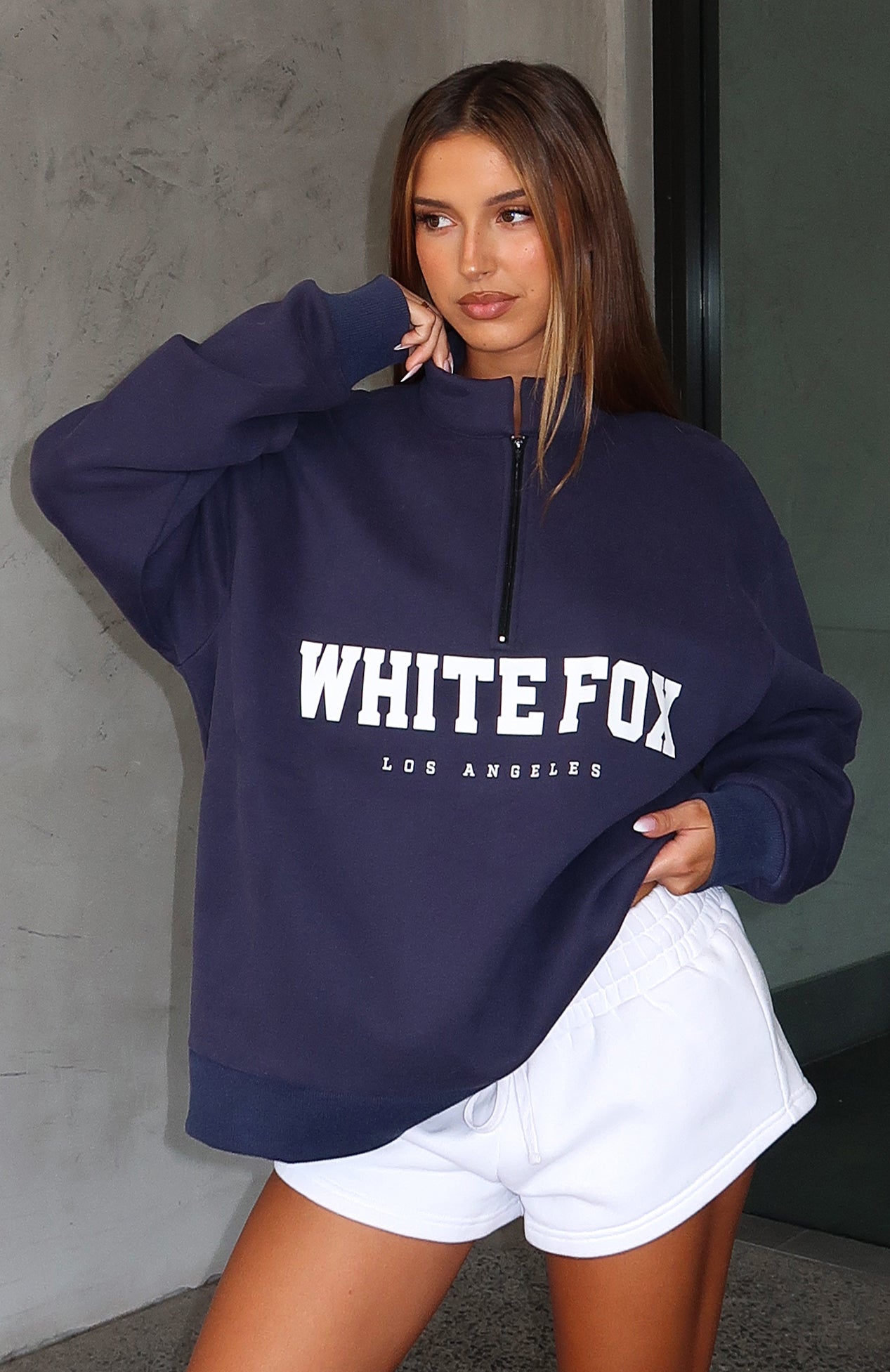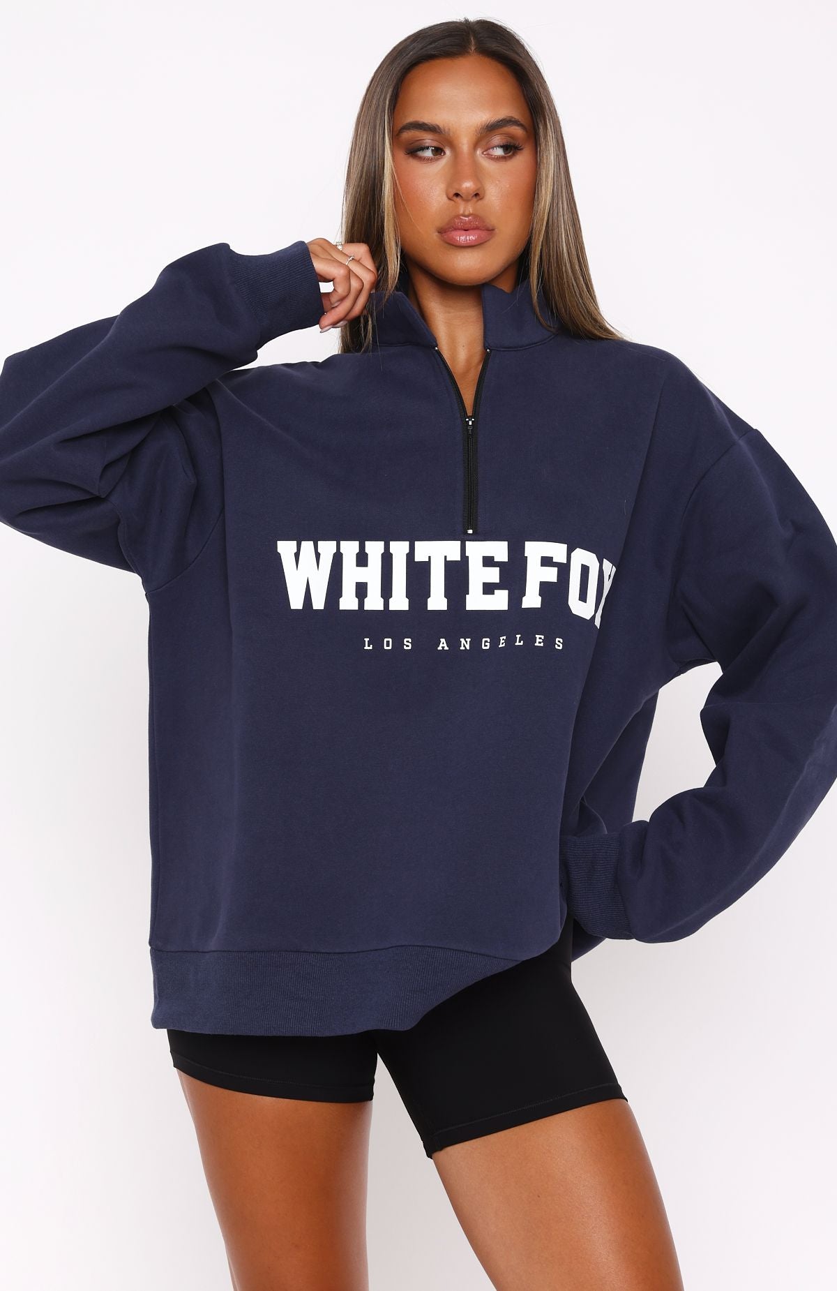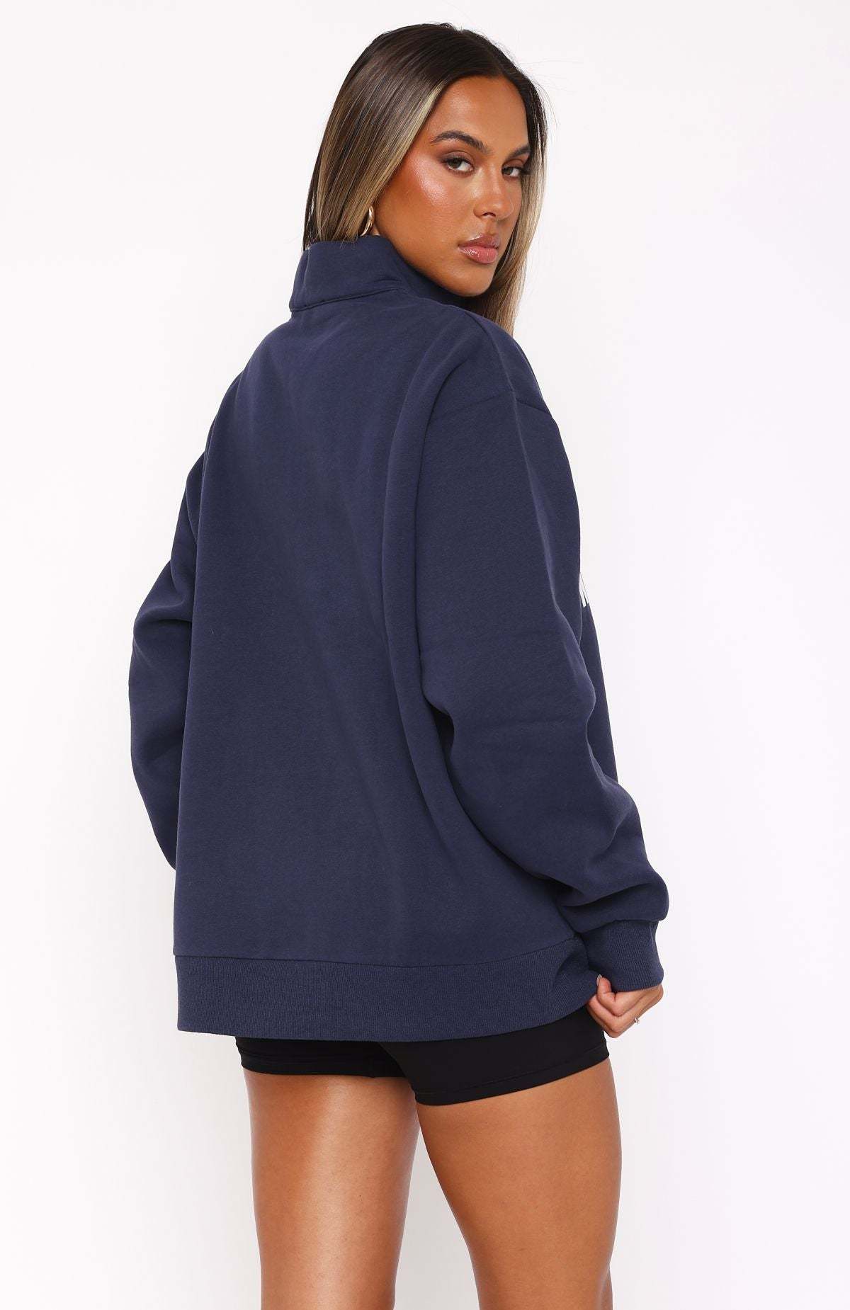 Get that effortlessly chilled vibe on point with the High Standard Zip Front Sweater in Navy. Featuring an oversized fit, vintage feel, zip front, ribbed hemline and cuffs, logo centre front and fleece lined. Style with your favourite pair of White Fox bike shorts for ultimate comfort.
