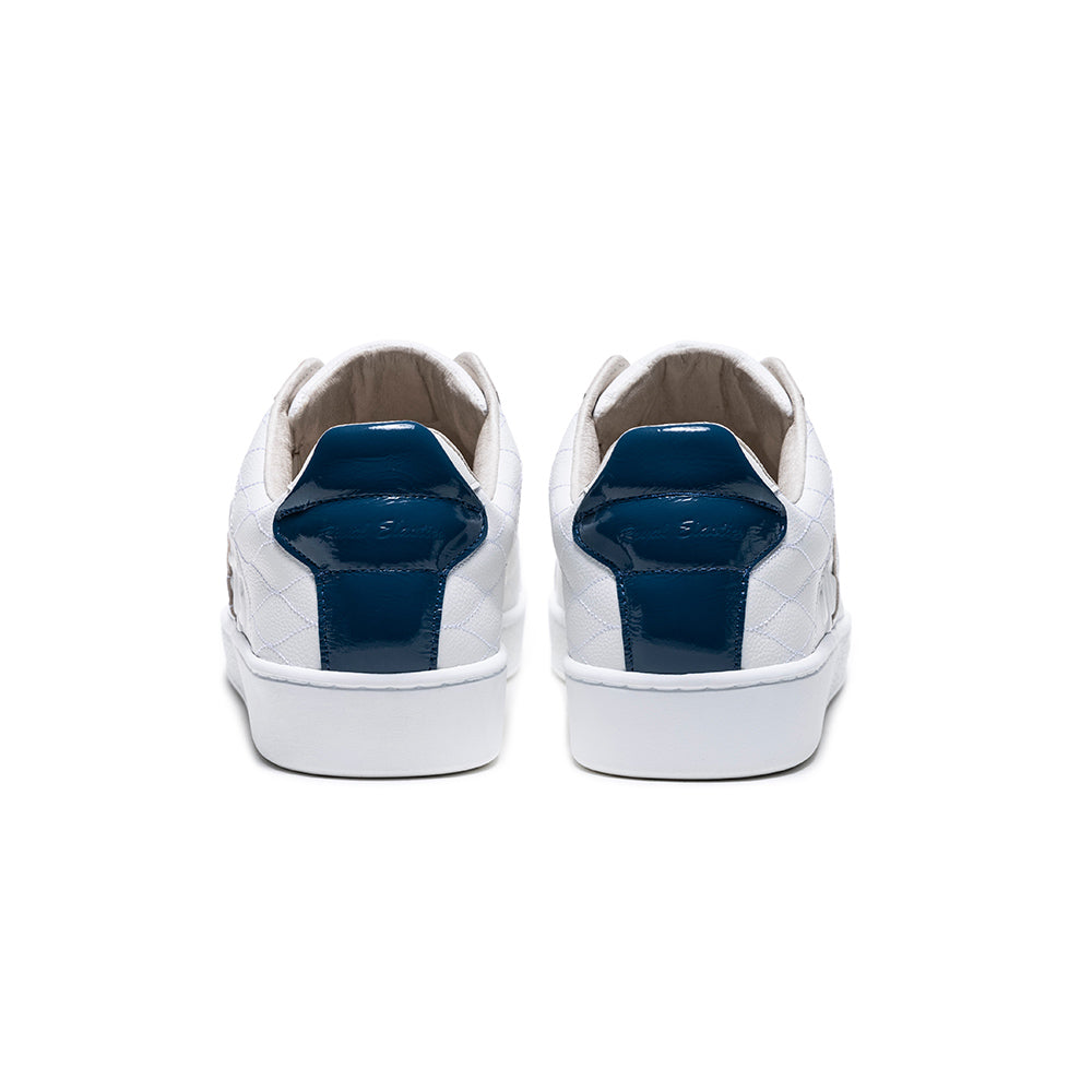 Men's Icon Lux White Blue Leather Sneakers 02523-005