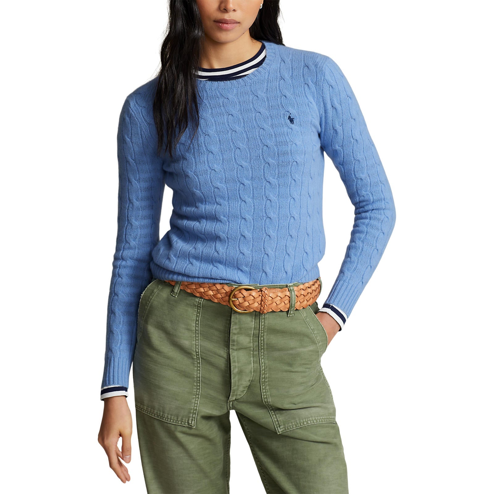 Polo Ralthtph Lauthtren - Julianna Cable Knit Crewneck Cashmere/Wool Sweater - New Litchfield Blue