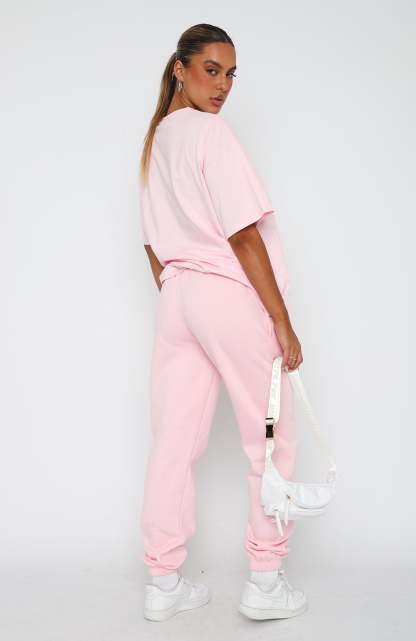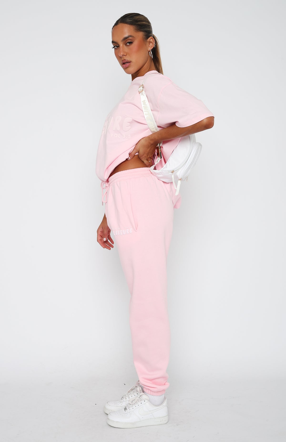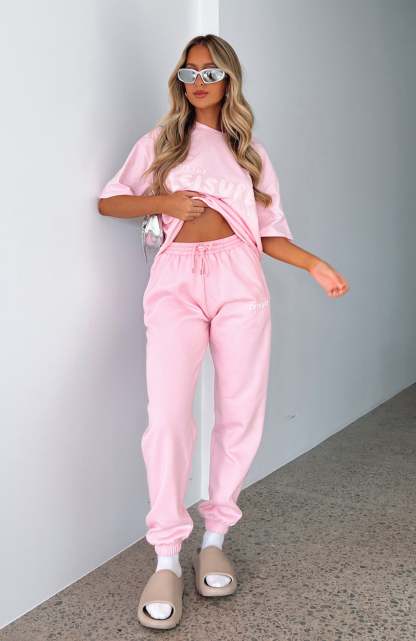 Loungewear is our current uniform and we are living in the Leisure Series Sweatpants in Posy. Featuring a high elasticated drawstring waistband, elasticated ankles, side pockets, soft fleece fabric for extra comfort and puff print logo on side of leg. Complete the look with the matching Leisure Series Oversized Hoodie or Leisure Series Oversized Tee and sneakers for the ultimate off-duty fit!