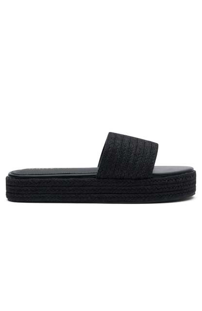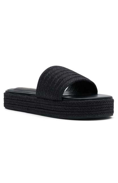Add some height to your day time look with the Lush Life Slides Black Woven! These platform slides feature a single thick supper, rounded toe, padded footbed and woven fabric.
