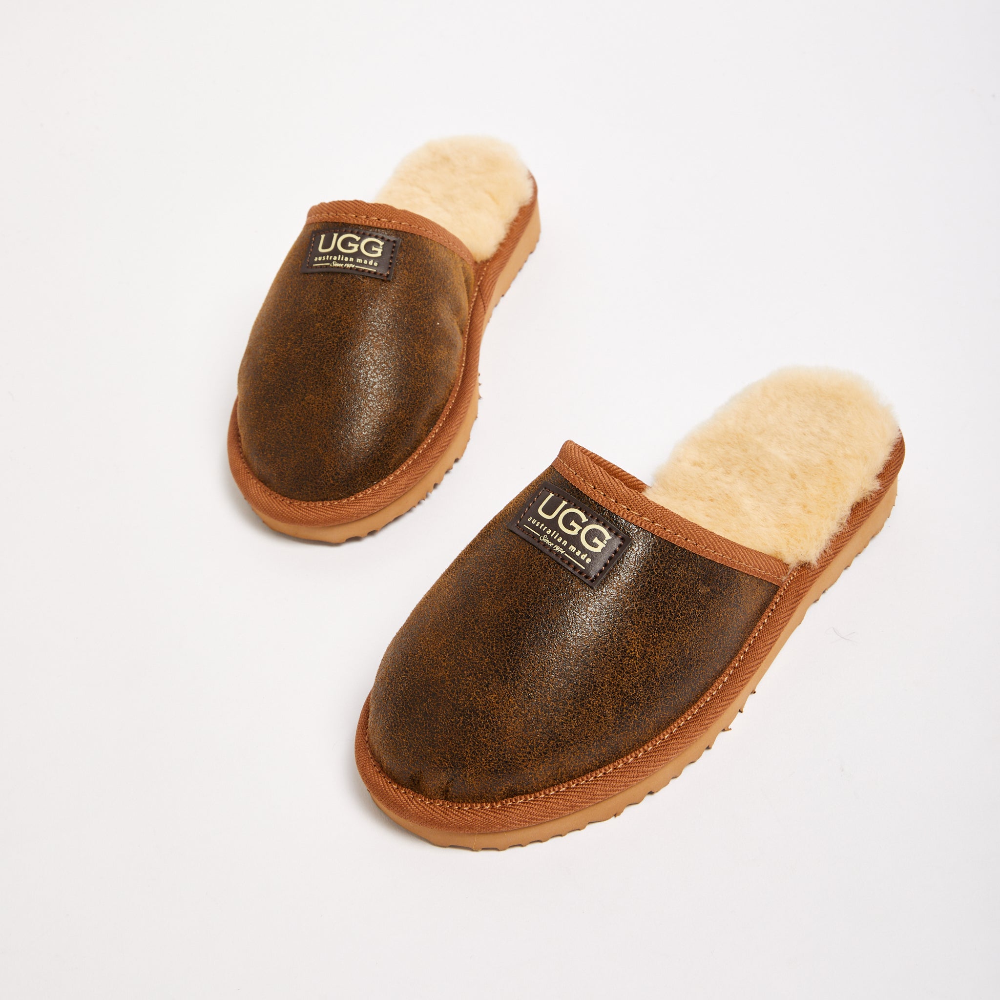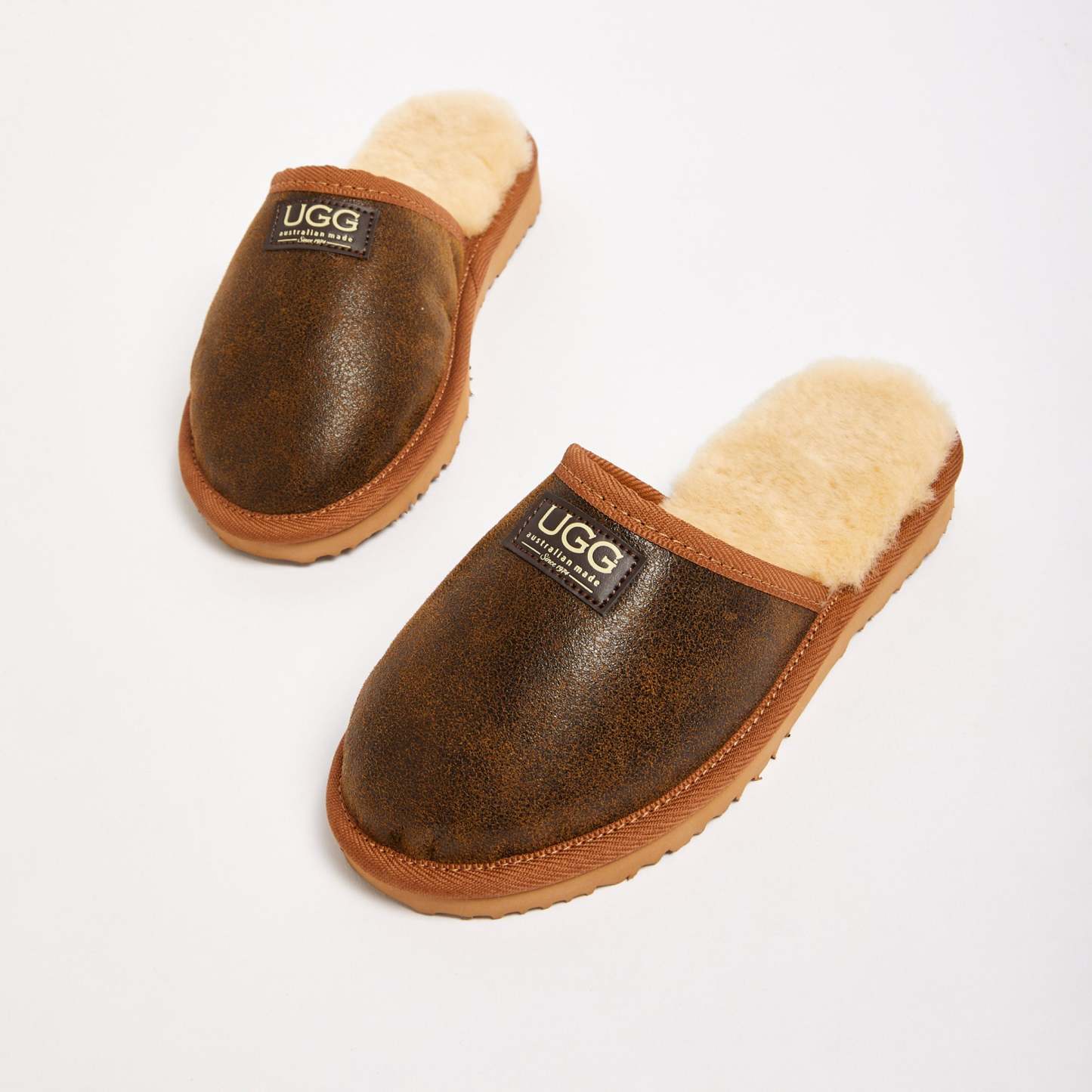 AUSTRALIAN SHEPHERD® UthtGG Slippers Double Face Sheepskin Wool Scuff Waffle