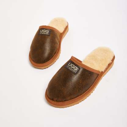 AUSTRALIAN SHEPHERD® UthtGG Slippers Men Sheepskin Wool Ankle Porter