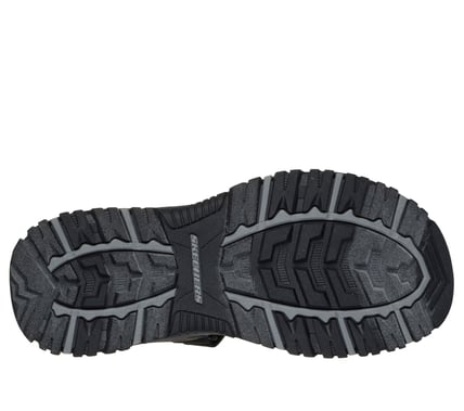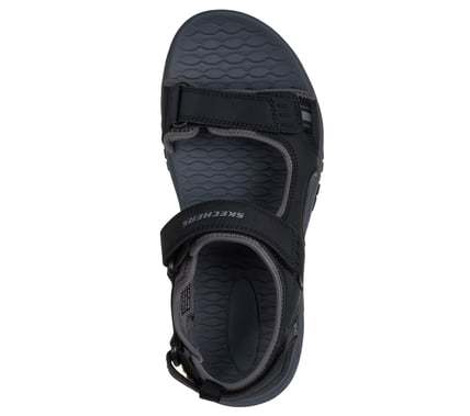 Travel all day in long-lasting comfort with Skechers Relaxed Fit®: Prewitt - Rigdon. This roomy vegan sandal features a synthetic upper with 3 adjustable strap closures and a cushioned Luxe Foam® footbed.