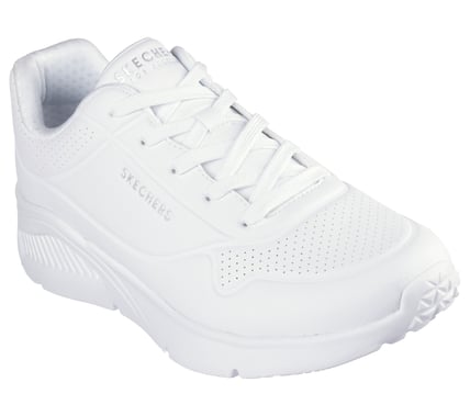 Level up your sneaker game with cushioned comfort wearing Skechers Street™ Uno Lite - Lite Work. This lace-up fashion sneaker features a synthetic duraleather upper with a platform wedge cushioned midsole and a cushioned Skechers Memory Foam™ insole..