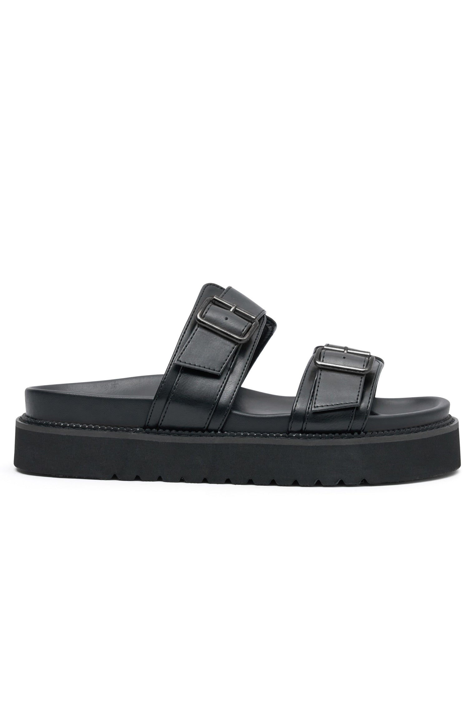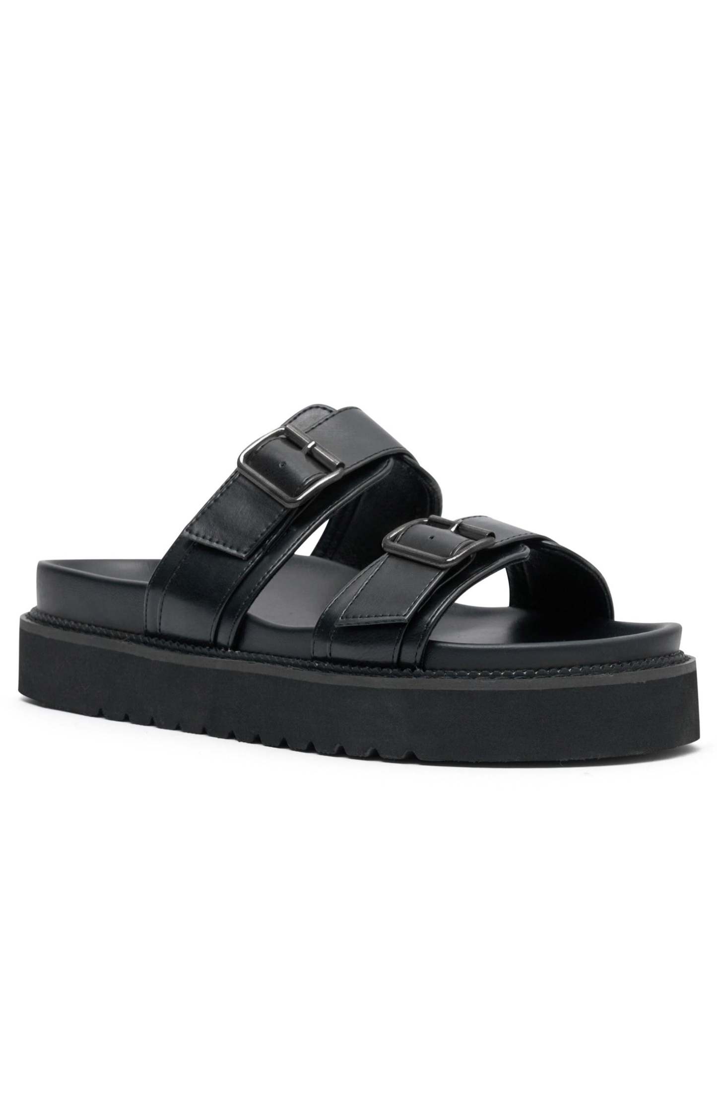 Slip on the Mila Slides in Black and you are ready for your weekend adventures! Featuring easy slip on design, open rounded toe, double strap design with buckle detail and open back. You need these slides to complete your summer's day fit!