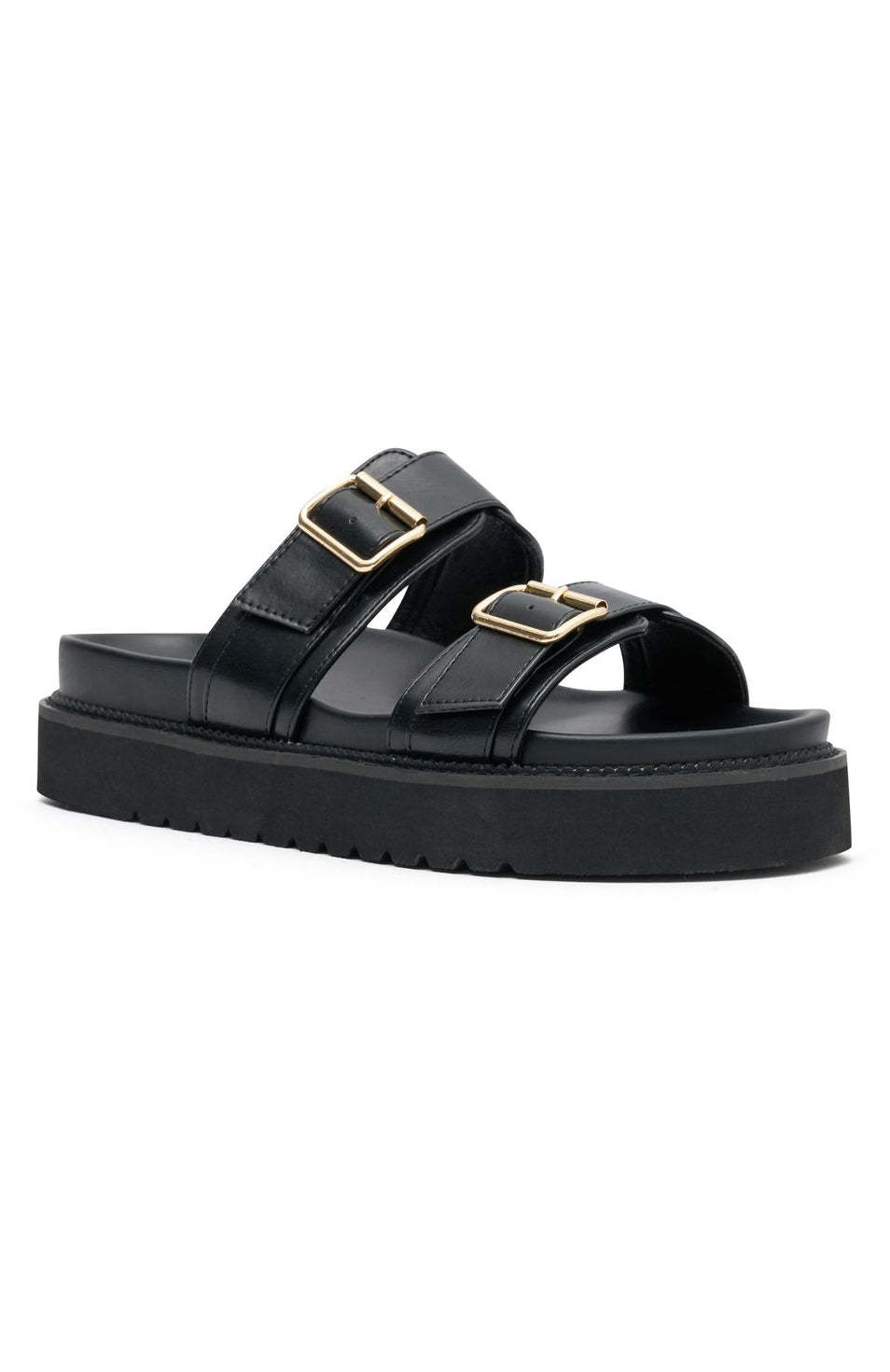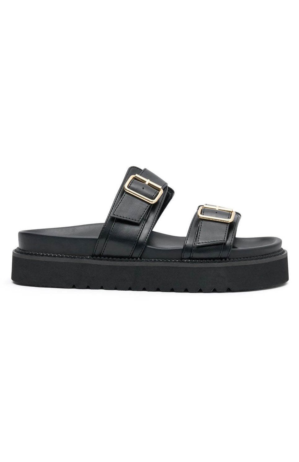 Slip on the Mila Slides in Black/Gold and you are ready for your weekend adventures! Featuring easy slip on design, open rounded toe, double strap design with buckle detail and open back. You need these slides to complete your summer's day fit!