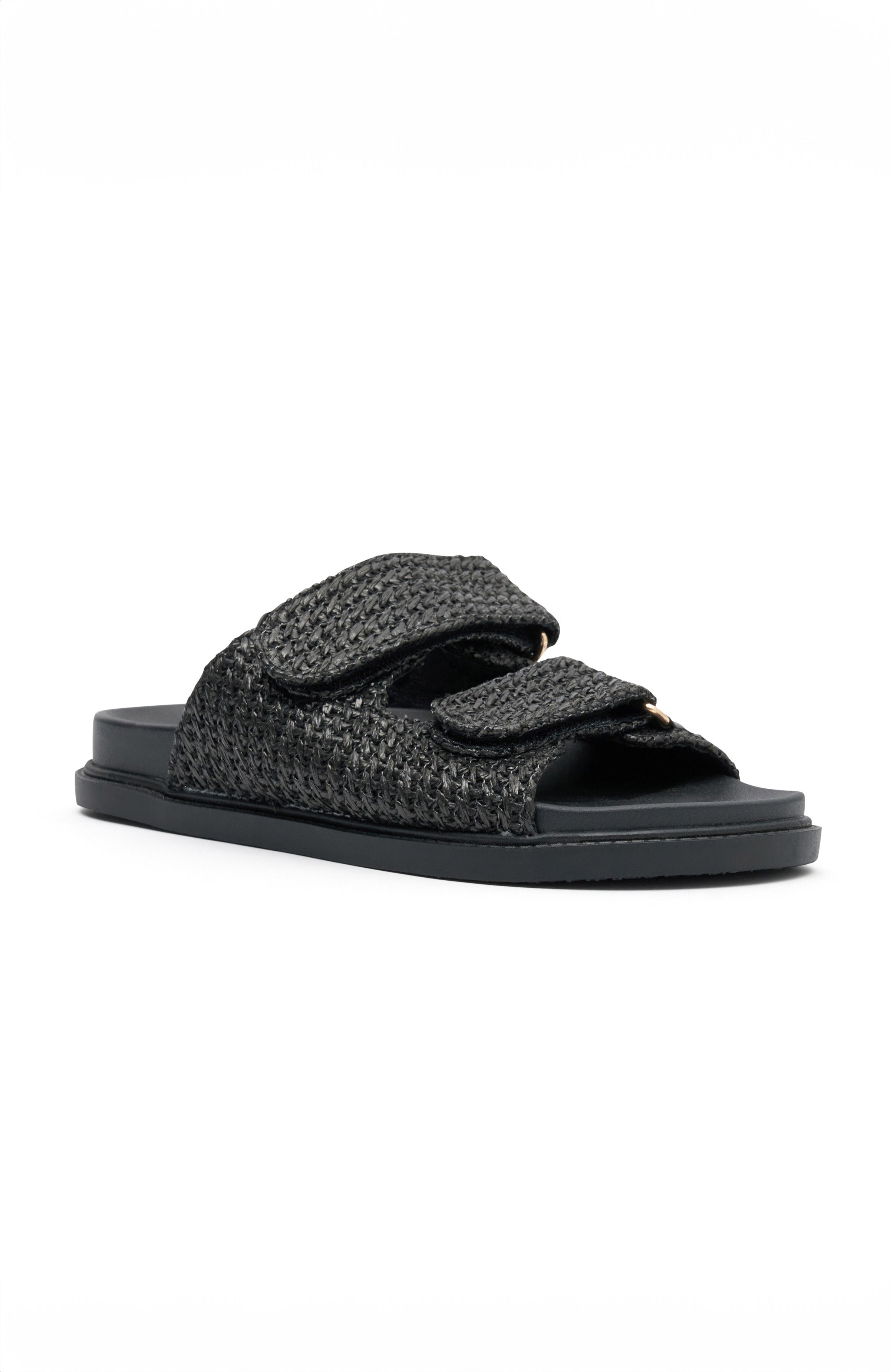 Get vacay ready in the Off Duty Sandals Black. Features a slip on design, velcro strap design, open toe and a lightly padded sole.