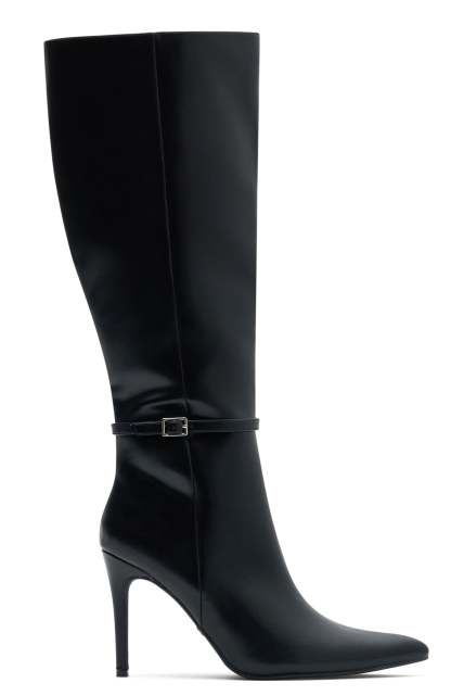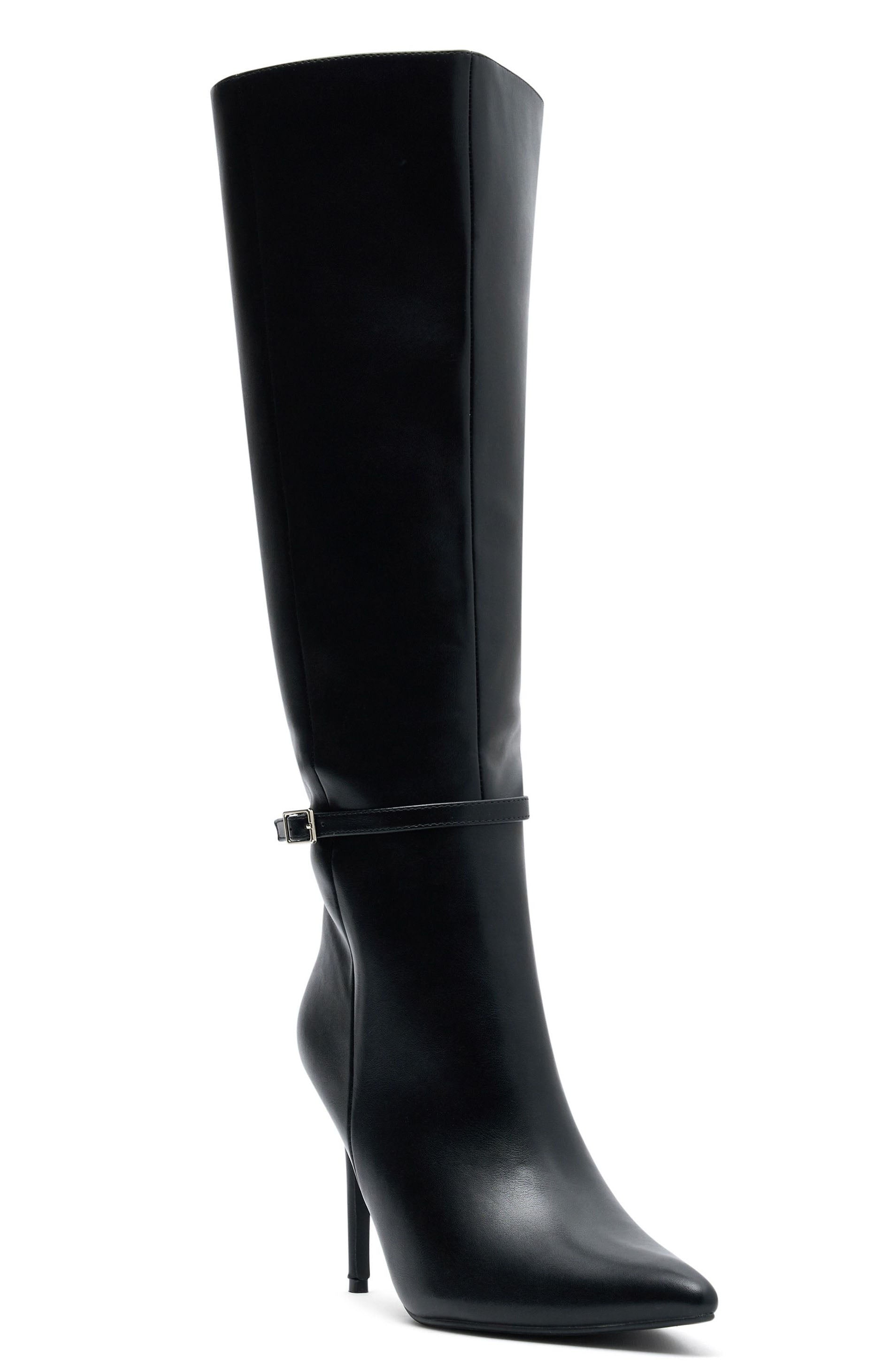 Add some height to your night time look with the One Step At A Time Knee High Boots Black. Features a stiletto heel, an extended pointed toe-shape, buckle detailing, and an inner zip to easily slip on and go.
