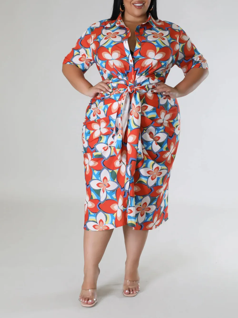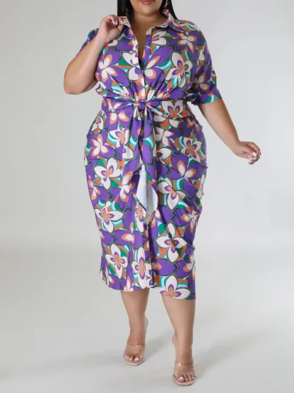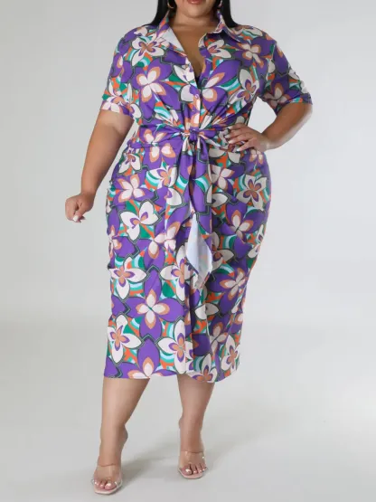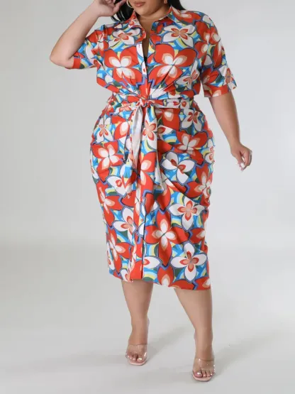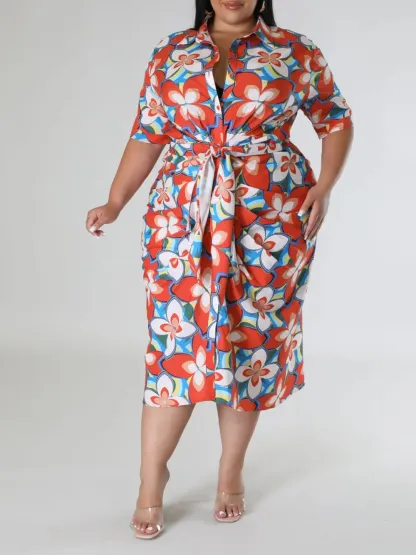 Plus-Size Fashion Women'S Floral Print Dress