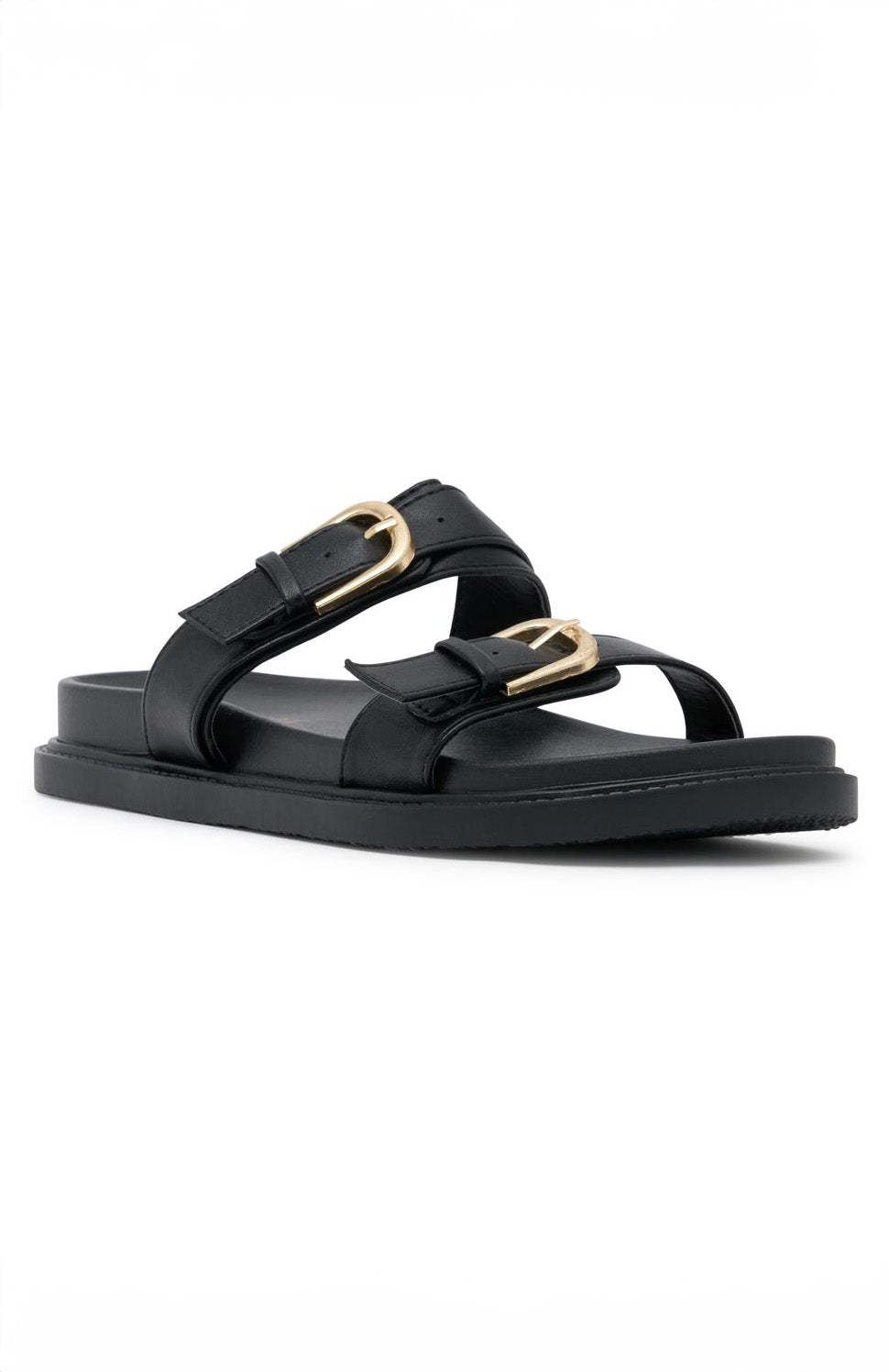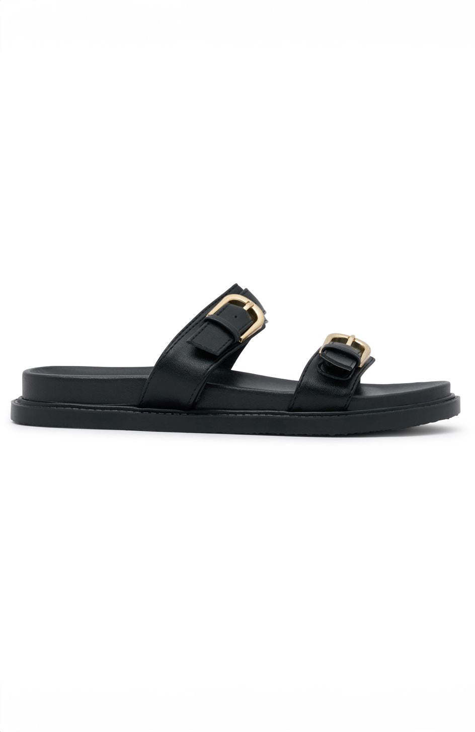 Your summer outfit isn't complete without the Plot Twist Slides Black. Featuring an easy slip on design, open rounded toe, double strap design with buckle detail and open back.