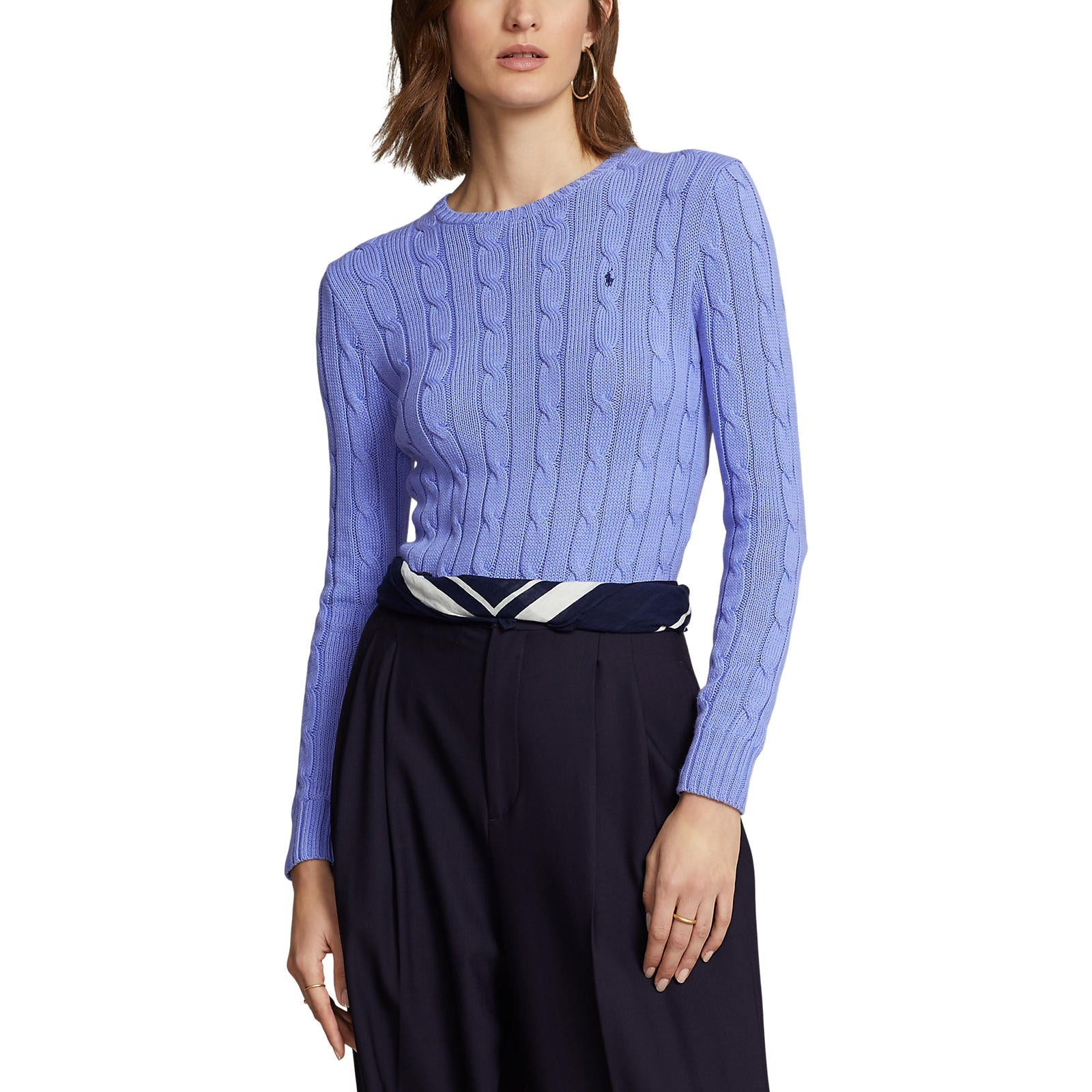 Polo Ralthtph Lauthtren - Cable-Knit Cotton Crewneck Sweater - Blue