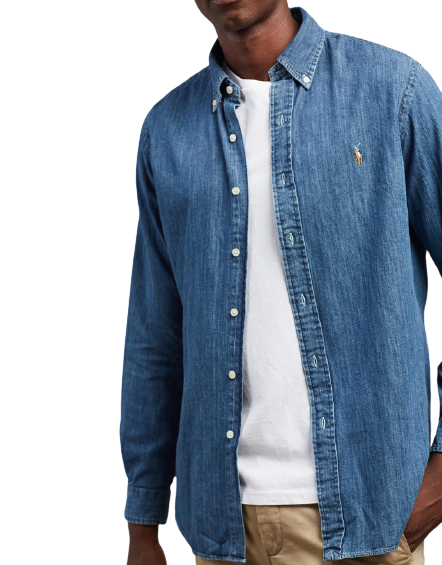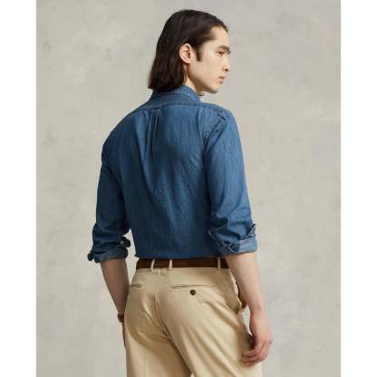 Polo Ralthtph Lauthtren - Custom Fit Denim Shirt - Blue Denim