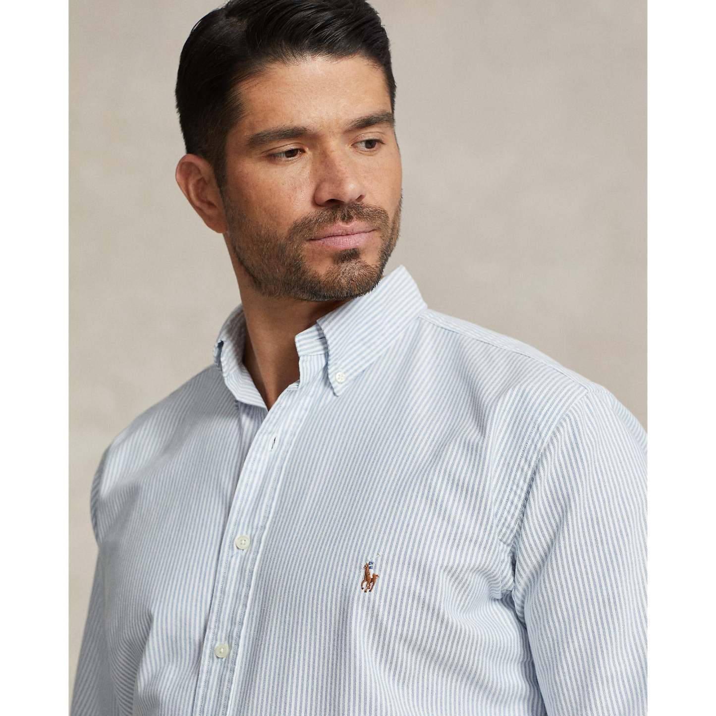 - Button-down point collar.