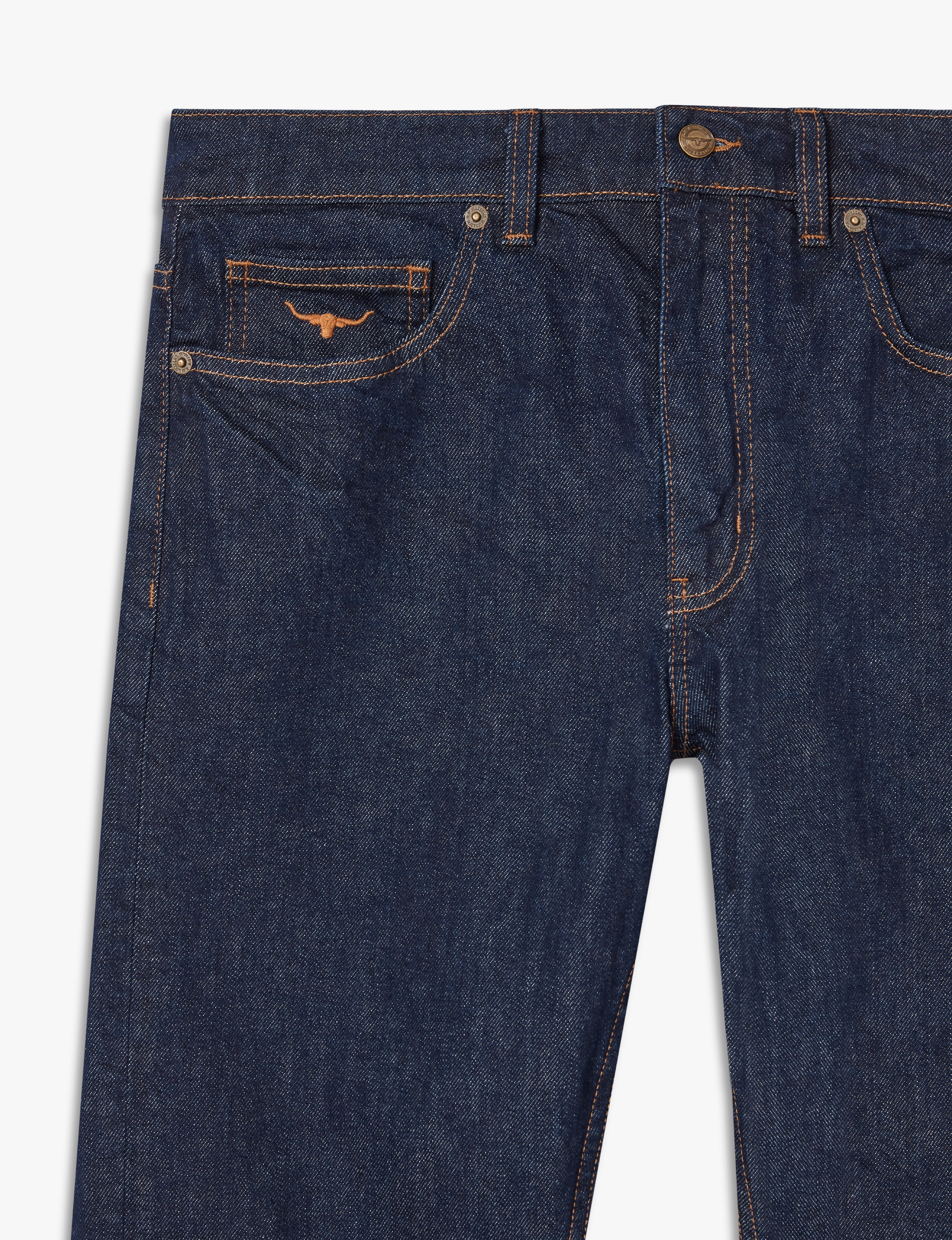 Made in Australia using 12oz Premium denim, the Ramco Jean is regular fit that sits below the waist, featuring 5 pockets, Longhorn jean button and rivets, back hip pockets with feature stitch, signature Longhorn embroidery on fob pocket, R.M.Williams leather badge on waistband