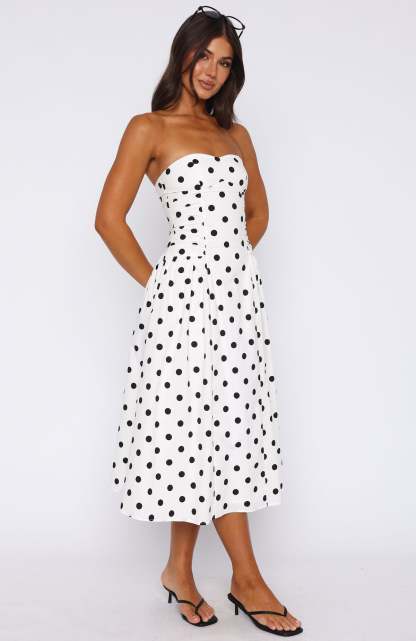 Rich In Love Strapless Midi Dress White/Black Polka Dot
