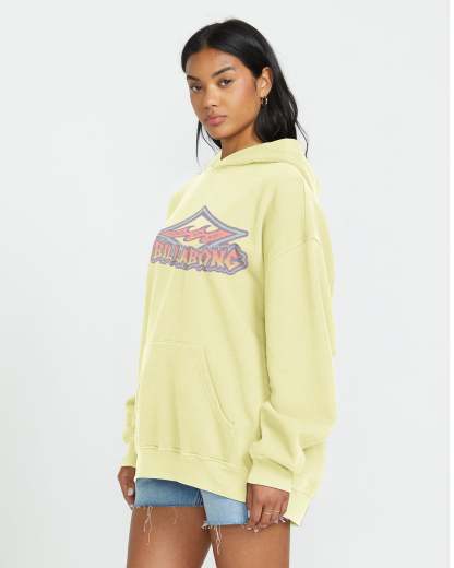 Slip into total weekend mode with this slouchy pullover hoodie. Made from an ultra-soft cotton-blend fleece, it has an oversized, relaxed fit perfect for lazy days spent lounging. A printed graphic keeps this cozy essential looking stylish. Featured here in the Sunspell colorway.