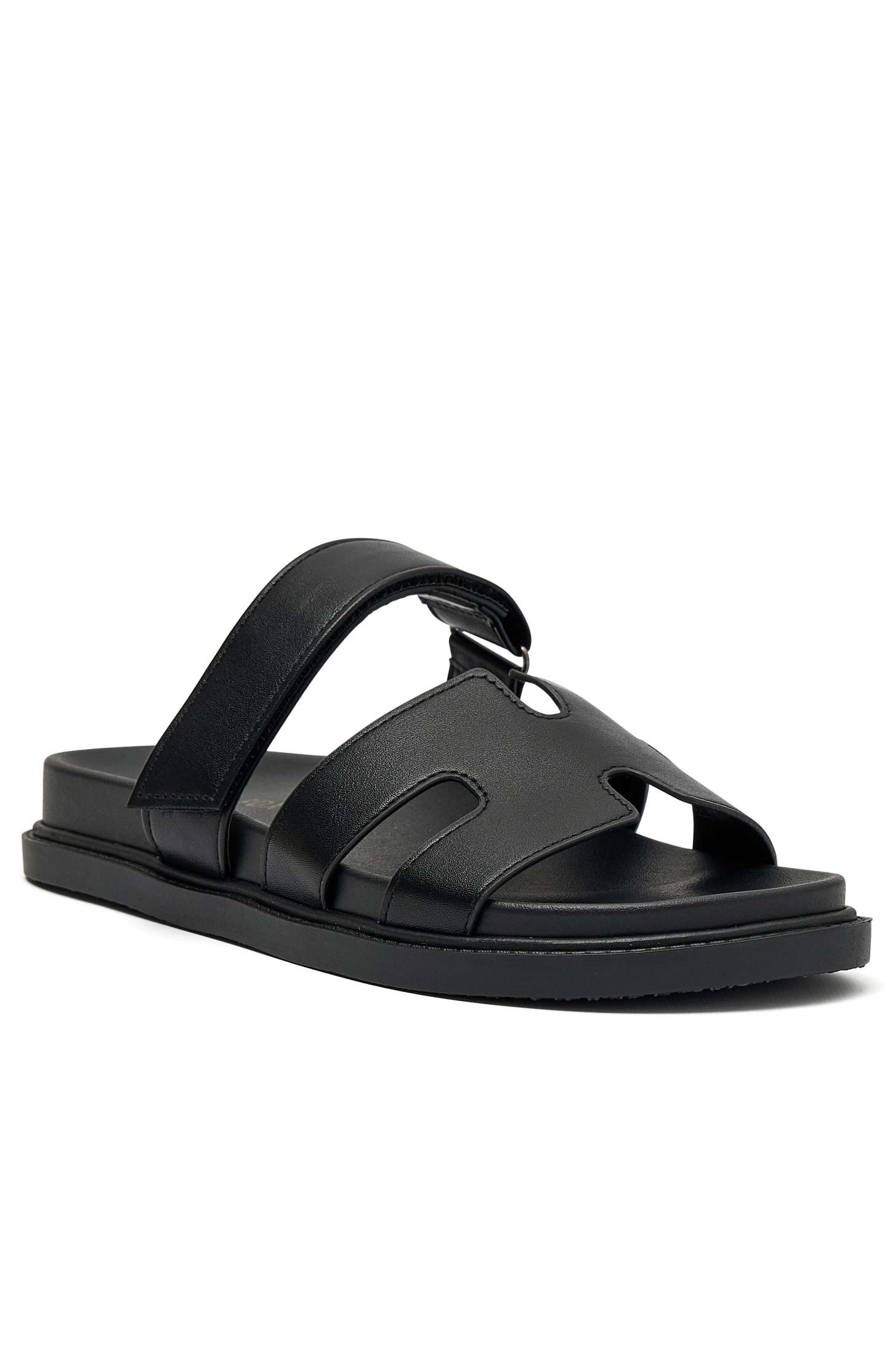 Embrace effortless style with the Riley Sandals Black. Features an open rounded toe design, adjustable velcro strap, open heel and thick sole.