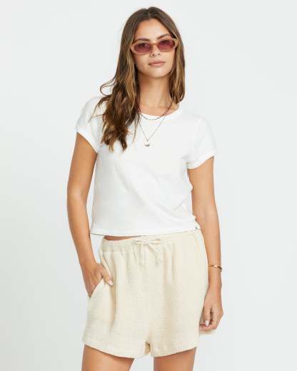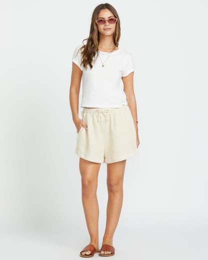 Your new go-to for lounge sessions: Billabong Women's 100% cotton So Cozy Shorts with an elastic, adjustable waistband. Breathable waffle fabric and side pockets make these ultra-comfy, perfect for lazy days spent on the couch catching up on Netflix. Featured here in the Dove colorway.