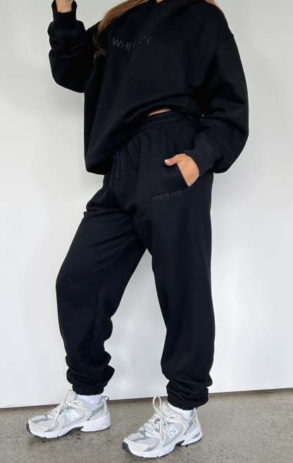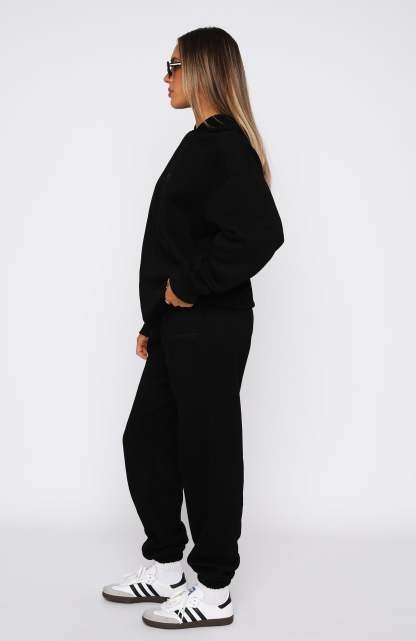 Slide on the most comfy sweatpants. The Stay Lifted Sweatpants Black features a high elasticated drawstring waistband, elasticated ankles, side pockets, soft fleece fabric for extra comfort and embroidered logo on side of leg. We're in love!