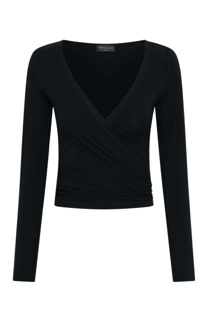 Staying Cute Long Sleeve Wrap Top Black