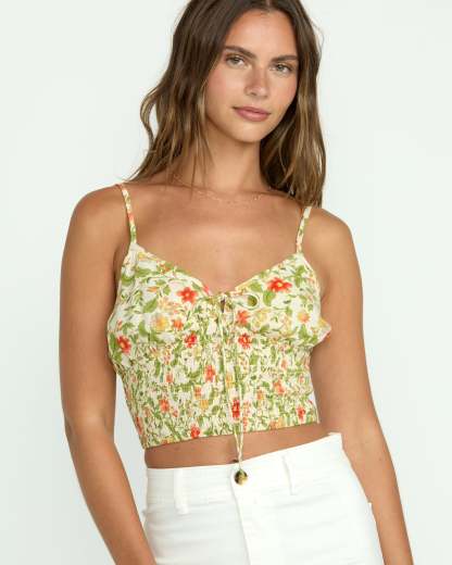 Embrace sun-soaked days in the Bloom Smocked Cami: cut from lightweight woven fabric in a vintage-inspired floral print, this cropped cami features adjustable tie-front straps and a smocked waist that flatters every curve. Pair it with high-rise denim or beachy skirts for effortless off-duty style. Featured here in the Multi colorway.