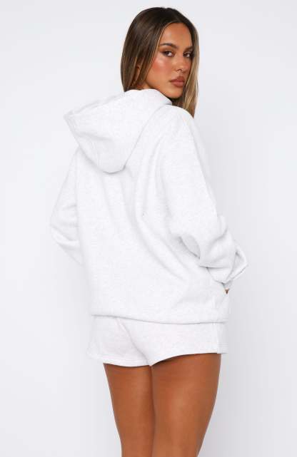Get cosy in the The Good Life Oversized Hoodie in Grey Marle. Features hood, slouched shoulder design, long sleeve with ribbed cuff detailing, pocket centre fox, White Fox vintage text centre front, ribbed detailing on waist and inside fleece fabrication. Comfy life is all about matching sets and the The Good Life Lounge Shorts in Grey Marle meets the brief.